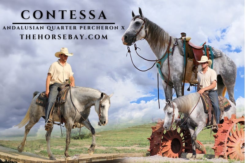 OPEN BIDDING ON THEHORSEBAY,COM. SALE ENDS ON 10/23 @ 5PM CT. More information is available on the website, including an UTD vet inspection, Coggins, video, images, and the owner's contact information to ask questions, request information, or make arrangements to come to visit. Contessa is absolutely everything you could want wrapped up in one beautiful package! She is the definition of class, athleticism, reliability and a competent all-around horse. She has been easy to teach anything and everything and she retains it all, always approaching new tasks happily. Ride or drive, this mare does it all! She is an absolute professional when it comes to driving (single or double). She was the go-to for driving the Amishman’s wife in town. She is absolutely bomb proof on the trail courses. If you are looking for a trail competition horse, she will put you in the money. She is so athletic in the jumping side of life as well, with room to grow. She loves hacking out on the cross-country course and is equally amazing in the arena on jump courses. She is ready to go show. Contessa is simple to ride with no bad behavior or vices. You can put anyone on this mare with confidence. She has great scope and unmatched hind end action. She is a forward and brave horse when going around the jump courses. She is the ultimate fox hunting horse with her boldness, stamina, and class. She also enjoys helping us gather the cattle on the ranch. She would be amazing for a beginner sorter to learn on or go enjoy some beginner sortings. She can sit as long as you like, and you can step to her with confidence. She will be the same horse every ride. She would excel in Doma Vaquero or some western dressage. She would be absolutely amazing in the eventing world too. She is young with an exceptional mind, ready to become your dream horse in any discipline you could want as she has experience all around! We are very proud to offer such a fine horse. No maintenance, lameness, or bad behavior with this gal. Loads and unloads as they all should. Great for the farrier with a size 1 shoe. Contessa is gentle, sweet and in your pocket. Great to tack and untack. Gets along with other animals well. She’s truly one in a million. Skills: All Around, Athletic, Cross, Dappled, Dressage, Driving, English Pleasure, Equitation, Eventing, Experienced, Field Hunter, Field Trial, Gymkhana, Harness, Hunt Seat Equitation, Hunter, Hunter Under Saddle, Husband Safe, Jumper, Jumping, Hunter Jumper, Lesson, Pack, Parade, Performance, Playday, Pleasure Driving, Ranch, Ranch Work, Ridden English, Ridden Western, Saddle Seat, School, Show, Show Experience, Show Hack, Show Jumping, Team Driving, Trail Riding, Western Dressage, Western Pleasure, Western Riding, Working, Working Equitation, Youth
