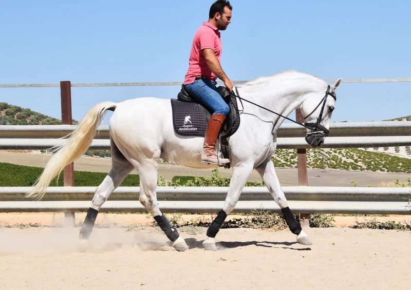Caractère doux, monté en allures de base, principalement en extérieur, Feria, Romería, Rocío, adapté aux cavaliers moins expérimentés. www.elegante-andalusier.com