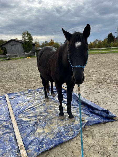 Schweren Herzens suche ich für meinen Schatz ein neues 5-Sterne-Zuhause – für immer. Aufgrund einer falschen Altersangabe durch die Vorbesitzerin ist er mindestens 1,5 Jahre jünger als im Equidenpass vermerkt. Ich habe ihn damals (2011) – mit tatsächlich etwa 2,5 statt 4,5 Jahren (Zahnstatus durch einen Pferdezahnarzt bestätigt) – vor dem Metzger gerettet. Seitdem ist er in meinem Besitz. Ich selbst reite nicht, habe ihm jedoch über viele Jahre hinweg hochwertigen und kontinuierlichen Beritt ermöglicht. Nachdem er solide auf A/L-Niveau ausgebildet war, wurde er zuverlässig und langfristig durch Reitbeteiligungen bewegt, die ihm über mehrere Jahre treu geblieben sind. Heute spüre ich, dass er einen Menschen verdient, der ihm all das geben kann, was ich ihm selbst nicht in vollem Umfang bieten kann: Zeit, Präsenz und eine enge, konstante reiterliche Verbindung. Er steht seit 13 Jahren im Offenstall, ist sehr sozial, menschenbezogen und freundlich im Umgang. Aktuell wird er hinten auf Barhuf umgestellt. Ob dies langfristig gut funktioniert, kann ich noch nicht abschließend beurteilen, da er zuvor immer beschlagen war. Er ist ein sensibles Pferd mit feiner Wahrnehmung und braucht einen ruhigen, klaren Menschen, der gerne mit sensiblen Pferden arbeitet und ihnen mit Ruhe, Geduld und Zuversicht Sicherheit vermitteln kann. Er liebt Abwechslung: Freispringen, kleine Cavalettisprünge, Ausritte in Gesellschaft, Dressur – auch das darf sein –, Bodenarbeit, Stangenarbeit, Schrecktraining … kurz gesagt alles, was Pferd und Mensch gemeinsam vielseitig fördert. Meine Reitbeteiligungen wiegen ca. 55–60 kg. Viel mehr würde ich für ihn auch nicht wollen. Da er nicht weg muss, suche ich ohne Zeitdruck und mit Bedacht. Wichtig ist mir ausschließlich, dass Mensch und Pferd wirklich zueinanderpassen und er ein liebevolles, dauerhaftes Zuhause findet. Am liebsten würde ich ihn in erfahrene Hände geben, die einen eigenen Stall hat, damit er der Prinz sein darf, der er im Herzen schon ist. Für weitere Informationen bitte einfach melden.