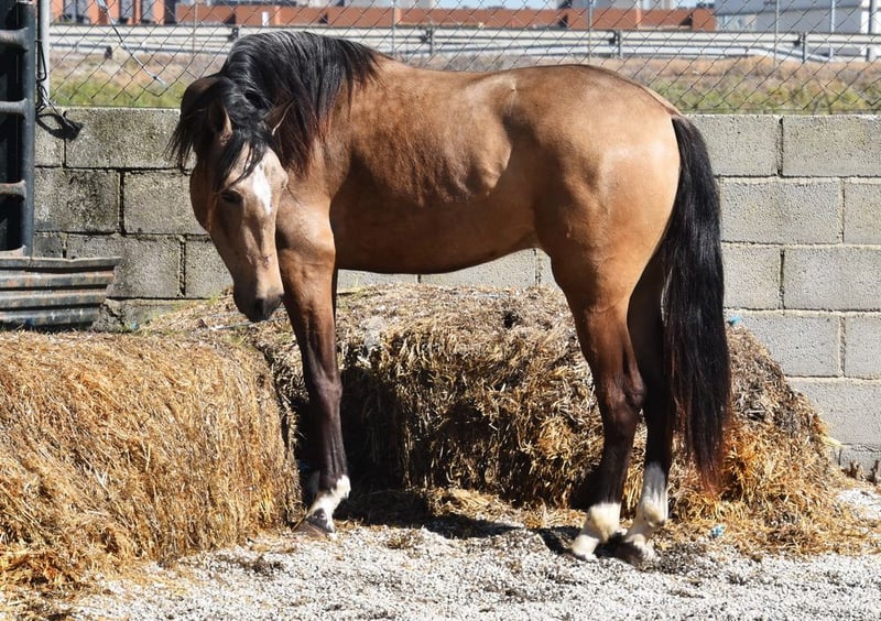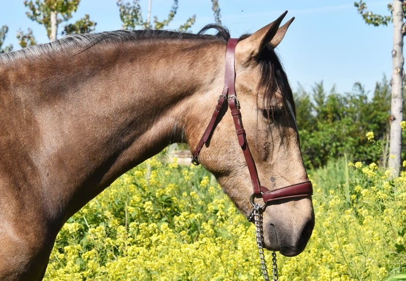 Lieve jonge Andalusiër ruin, klein en barok, met een lichte vachtkleur