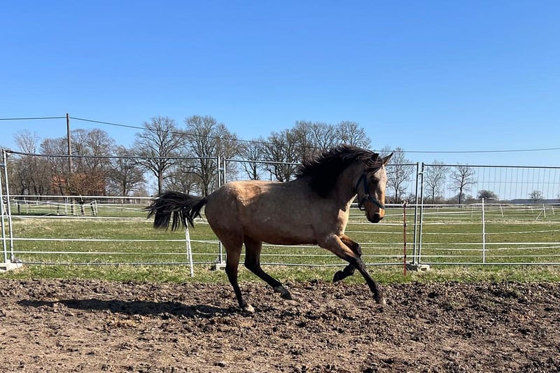 Złoty chłopak z zamiłowaniem do przygód szuka opiekuna Ten 3-letni ogier andaluzyjsko-lusitano w niezwykle urokliwym kolorze buckskin wie dokładnie: wygląd to jedno – charakter to drugie. I potrafi mieć jedno i drugie. Wychowany w małej, szlachetnej hodowli, nie zna ani kolki w boksie, ani złych manier. Zamiast tego: życie stado, dużo ruchu na rozległym, pagórkowatym terenie, co zapewnia mu doskonałe warunki do wyrobienia silnych nerwów, stabilnych nóg i jasnej głowy. Jego linia hodowlana niezawodnie dostarcza tego, czego się oczekuje (a czego niestety nie jest to takie oczywiste): 🧠 myśli samodzielnie 🦁 jest odważny, ale nie bezmyślny ❤️ ma chęć do pracy 🤝 pozostaje przyjazny 💪 wytrzyma nawet dłużej Ten młody dżentelmen jest gotowy na rozpoczęcie kariery i szuka kogoś, kto pokaże mu, jak ekscytujące może być życie jako koń rekreacyjny. Możliwości? Prawie wszystko, co sprawia radość: Western, ujeżdżenie, dressage, Working Equitation, jeździectwo terenowe, wyścigi długodystansowe – jest otwarty na nowe wyzwania i szybko się uczy. Podsumowanie: Złoty, surowy diament, który jeszcze niczego nie „wypalił”, pracuje zamiast dyskutować i z pewnością kiedyś będzie końm, o którym powie się: „Już go nie oddam.” ✨🐎