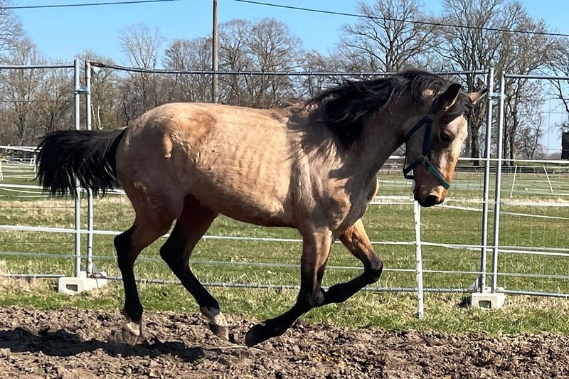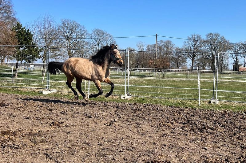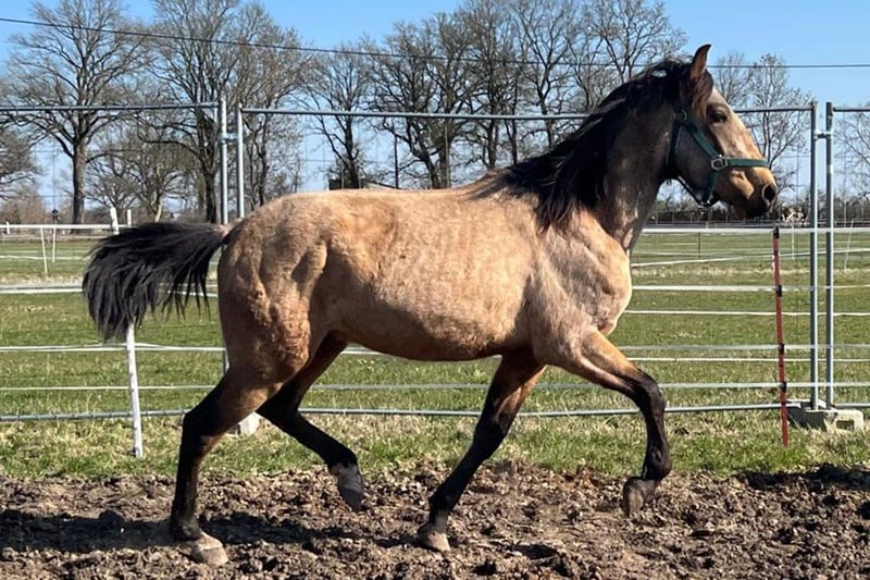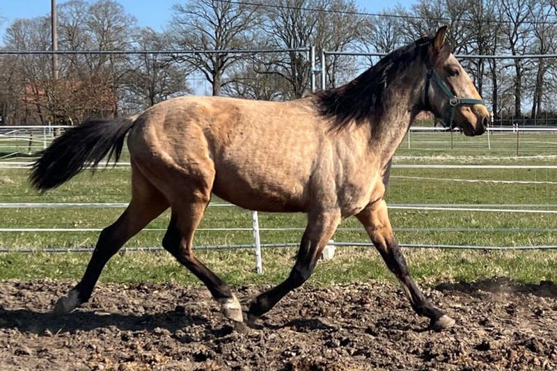Andalusische hengst van 3 jaar in speciale kleur buckskin zoekt eindstelling
