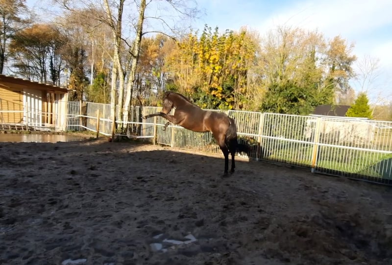 Onze Jaro is op zoek naar zijn 5⭐🏡. Hij is van 30.06.2023 en is op dit moment rond de 1.60m. Hij is afgelopen zomer geruind. Hij is bij ons geboren en veel in handen geweest. Zijn moeder is een valkkleurige Andalusiër en zijn vader een zwart bruine Andalusiër x arabo fries. Wij zoeken een plekje voor hem waar hij lekker met andere paarden kan spelen en waar hij veel aandacht krijgt van een maatje die later met hem aan het werk gaat als hij er aan toe is. Hij is erg nieuwschierig en speels en is niet snel onder de indruk van dingen. Als hij ergens van schrikt gaat het snel over op spelen. Hij is wel iemand nodig die hem aan kan, want het is op dit moment natuurlijk een puber. Aangezien het een kopie is van zijn vader zal hij zodra hij aan het werk mag een super braaf dier worden. Hij is al een paar keer mee geweest in de trailer en dat ging heel braaf. Ook schriktraining als 1 jarige ging braaf. Hij is gechipt en heeft een paspoort. Ook heeft hij zijn 3 entingen gehad en wordt netjes ontwormt. Hij wordt elke 9 weken bekapt en heeft geen stalgebreken, maar 24/7 buiten geniet hij ook van. Hij gaat alleen naar een plek waar wij een goed gevoel bij hebben. Plek is belangrijker dan de prijs. De vraagprijs is €3250,- 📸 Foto's: Foto 1 t/m 3: recent Foto 4, 5: voorjaar 2025 Foto 6: najaar 2024 Foto 7, 8: 2023 Foto: 9, 10: zijn vader
