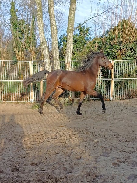 Unser Jaro sucht sein 5-Sterne-Zuhause 🏡. Er wurde am 30.06.2023 geboren und ist momentan etwa 1,60 m groß. Im vergangenen Sommer wurde er eingeritten. Er wurde bei uns geboren und war viel in unserer Obhut. Seine Mutter ist eine falbfarbene Andalusier-Stute, sein Vater ein schwarzbrauner Andalusier x Arabo-Friese. Wir suchen eine Stelle für ihn, an der er fröhlich mit anderen Pferden spielen kann und wo er viel Aufmerksamkeit von einem Kumpel erhält, der später mit ihm arbeitet, wenn er alt genug ist. Er ist sehr neugierig und verspielt und lässt sich nicht so leicht beeindrucken. Wenn er erschrickt, weicht er schnell ins Spielen aus. Er braucht jemanden, der ihn im Griff hat, da er momentan natürlich noch ein pubertierendes Pferd ist. Da er eine Kopie seines Vaters ist, wird er, sobald er mit der Arbeit beginnen darf, ein super braves Pferd. Er war bereits einige Male im Anhänger unterwegs, was sehr brav verlief. Auch die Schrecktraining mit einem Jahr hat er brav gemeistert. Er ist gechippt, besitzt einen Pass, ist bereits dreimal geimpft und wird regelmäßig entwurmt. Er wird alle neun Wochen getrimmt und hat keine Stallprobleme, genießt aber auch den 24/7-Auslauf im Freien. Er kommt nur in eine Umgebung, bei der wir ein gutes Gefühl haben. Der Platz ist wichtiger als der Preis. Der Verkaufspreis beträgt €3.250. 📸 Fotos: Fotos 1 bis 3: aktuell Fotos 4 und 5: Frühjahr 2025 Foto 6: Herbst 2024 Fotos 7 und 8: 2023 Fotos 9 und 10: sein Vater