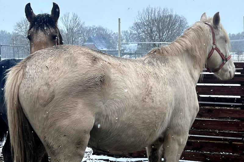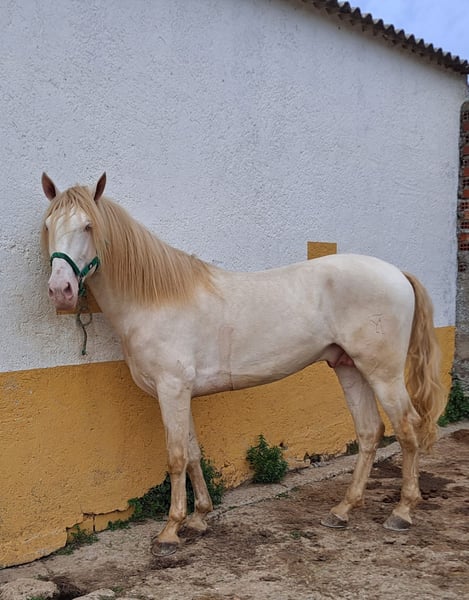 Wir bieten unseren wunderbaren Jungwallach Pegaso (geb. Mai 2023) zum Verkauf an – ein echter Hingucker in der außergewöhnlichen Sonderfarbe Cremello mit besten Voraussetzungen für eine vielseitige Zukunft. Abstammung & Aufzucht: Pegaso stammt aus einer sorgfältig gewählten Anpaarung von Andalusier und Lusitano – zwei iberischen Rassen, die Eleganz, Rittigkeit und ein nervenstarkes Wesen vereinen. Er wird direkt vom Züchter abgegeben und wächst artgerecht auf: in der Herde, auf großen Weiden und ganzjährig im Freien – beste Voraussetzungen für ein gesundes, ausgeglichenes Pferd mit starken Nerven und guter Sozialkompetenz. Perspektive & Einsatzmöglichkeiten: Pegaso bringt alles mit, um später in verschiedenen Disziplinen zu glänzen: ✔️ Barockes Reiten ✔️ Dressur ✔️ Working Equitation ✔️ Freizeit- und Geländereiten Sein aktuelles Stockmaß liegt altersentsprechend im Rahmen – das erwartete Endmaß liegt bei ca. 1,60–1,64 m. Sein Vater, ein imposanter Cremello-Hengst mit 1,68 m, ist auf den letzten Fotos der Anzeige zu sehen – ebenso wie Pegaso als Fohlen mit seiner Mutter. Besonderheiten: ✨ Sonderfarbe Cremello – absolut selten und edel ✨ Tolle Bewegungen & korrektes Gebäude ✨ Menschenbezogen, neugierig und intelligent ✨ Direkt vom Züchter – bestens sozialisiert und aufgezogen Pegaso ist aktuell noch roh und bereit, in liebevolle und kompetente Hände übergeben zu werden, die sein Potenzial weiter fördern möchten. Natürlich kennt er Putzen, Waschen, Anbinden, Führen und ist sozial mit anderen Pferden.