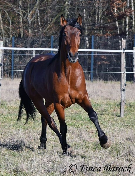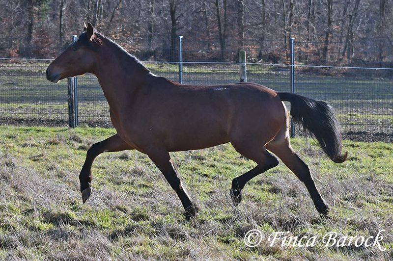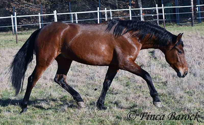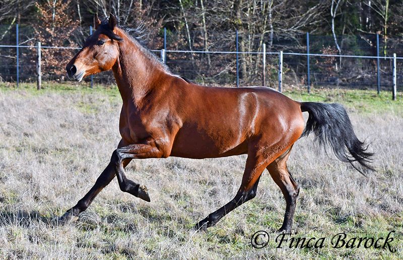 Rasse: Andalusier Name: Copito Geschlecht: Wallach Stockmaß: ca. 155 cm Alter: 26.04.2022 Farbe: Braun Preis: 7999 € Vater: o. P. Mutter: o. P. Copito, ist ein kompakter kleiner Bub mit 1a Charakter. Mit seiner freundlichen Art wickelt er einen schnell um seine Hufe. Er steht noch voll in der Entwicklung und wird noch weiter wachsen und auslegen. Im Umgang ist sehr zuvorkommend und genießt ausgiebige Putzeinheiten in vollen Zügen. Copito ist seinem Alter entsprechend in den Grundgangarten angeritten. Er hat einen angenehmen Schwung im Trab und eine sitzbequeme Galoppade. Auch seine ersten Ausritte hat er bereits mit Bravour gemeistert. Dabei zeigte er sich äußerst mutig – an einer „gruseligen“ Stelle übernahm er sogar die Führung, als sich das ältere Begleitpferd zunächst nicht traute. Copito kennt sowohl Herdenhaltung als auch Offenstallhaltung. Im Umgang mit anderen Pferden zeigt er sich sehr verträglich. Über Spielkameraden freut er sich immer, ohne dabei aufdringlich zu sein. Freilaufvideo: https://youtu.be/K9ArOT7yy8w?si=R5AEH0Rs94jJ2Ov_ Kontakt: Finca Barock, Tel. 0173-696 31 81, 56291 Wiebelsheim