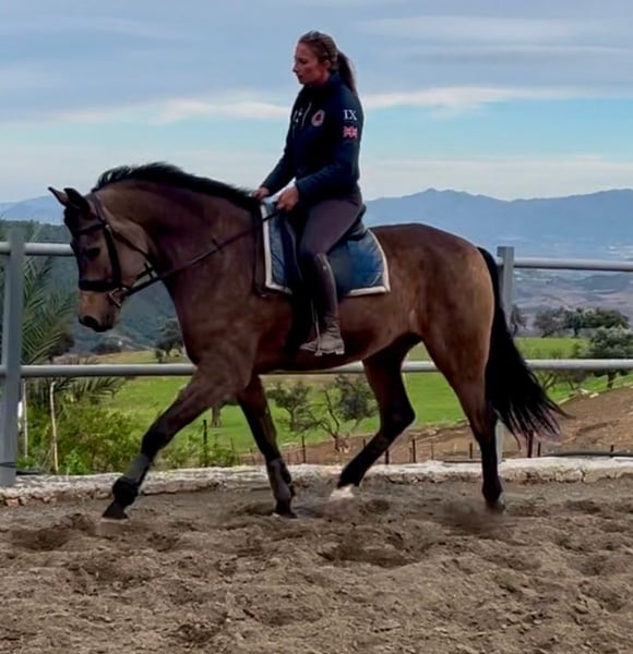 Andalusian gelding, buckskin, born 2020 and ap. 161 cm. "Snickers" is the perfect horse for the rider that wants to do a bit of everything, he has a good rideability and correct movements for dressage, safe and "bomb proof" for hacking and a great mentality to try other activities (WE, show jumping etc.). A positive horse that does everything with a great attitude and his ears forward. Easy to handle and likes attention. Used to go to Ferias and Romerias here in Spain, good with traffic and new environments. He's located in southern Spain and we help with all the steps in the buying process. Read more about us at www.cthorsesales.com Contact: info@cthorsesales.com