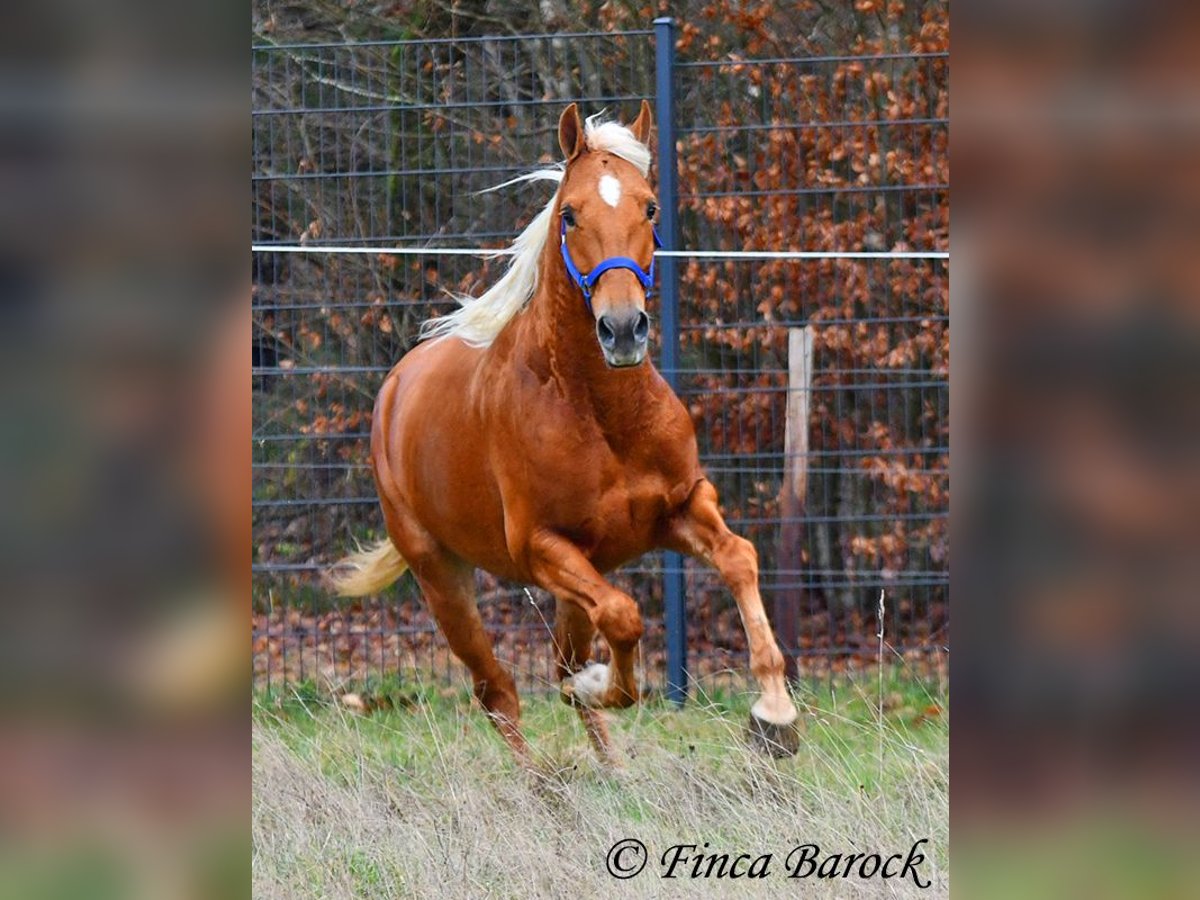 Rasse: Andalusier Name: Yucatan Geschlecht: Wallach Stockmaß: 156 cm Alter: 01.02.2020 Farbe: Palomino Preis: 9900 € Vater: o. P. Mutter: o. P. Yucatan, unser kompakter, freundlicher Bub in blonder Jacke. Im Umgang ist er verschmust, aufgeweckt und freut sich darüber mit seinem Menschen Zeit zu verbringen. Yucatan ist bis jetzt viel im Gelände geritten worden und fühlt sich hier total wohl. Er kennt es sowohl alleine als auch in Gruppen durch die Gegend zu streifen. Yucatan hat einen tollen, raumgreifenden Schritt und hält auch mit größeren Pferden gut mit. Straßenverkehr, Hunde und Fahrradfahrer sind ihm bekannt. Auch jüngere Pferde „nimmt er gut mit“ und schleppt diese an Unbekannten Sachen vorbei. Im Viereck kennt er die Bacic und wird hier von uns weiter gefördert. Yucatan wünscht sich einen Reiter der nicht zu viel treibt. Bei zu viel Druck bleibt er stehen. Bei normalen Hilfen geht er fleißig vorwärts. Er ist sitzbequem und arbeitet gerne mit. Auch seine Bergaufgaloppade ist hervorzuheben. Neben dem Reiten liebt Yucatan das freiarbeiten. Auch circensiche Lektionen machen ihm Spaß und hier zeigt er sich ebenfalls sehr lernbereit. So hat erinnerhalb kürzester Zeit das liegen erlernt. Spanischen Schritt haben wir ebenfalls angefangen. Ein toller Bub mit viel Ausstrahlung und klasse Charakter der sich sehr vielseitig zeigt und auf neue Aufgaben freut. inkl. klinischer tierärztlicher Untersuchung und Röntgenbildern Kontakt: Finca Barock, Tel. 0173-696 31 81, 56291 Wiebelsheim
