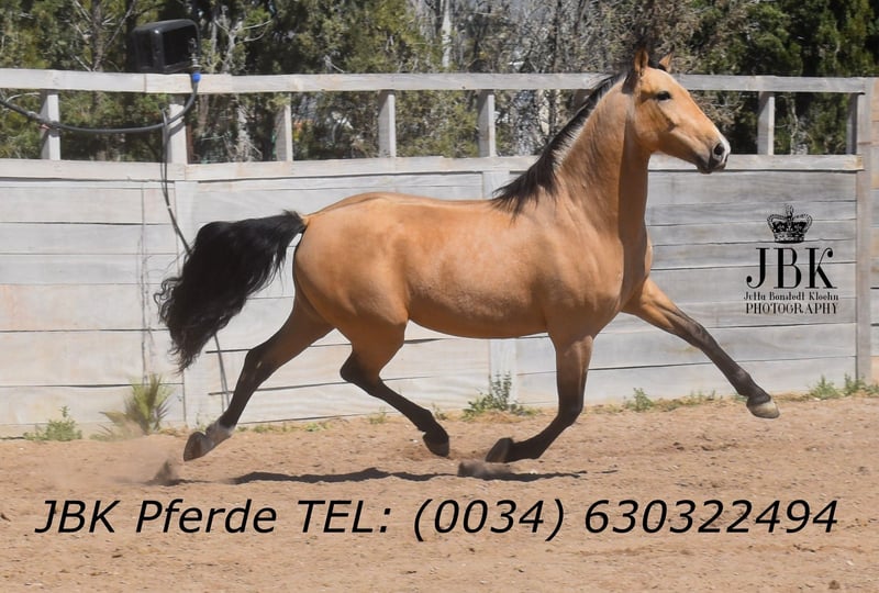 Gringo wurde am 07.08.2020 geboren. Er stammt von PRE Eltern ab, seine Mutter ist jedoch nicht gekört, also kein Eintrag im Ancce Stutbuch. Das tut seiner Qualität natürlich keinen Abbruch. Er ist super wendig, mega gut erzogen, absolut brav in allen Lebenslagen. Solide geritten ebenso. Sämtliche Fragen, ob er buckelt oder irgendetwas falsch macht, erübrigen sich hier absolut. Anbinden, Putzen, Führen, Reiten. Er macht das alles vorbildlich. Ein pferd mit dem man sofort loslegen kann, nach Eingewöhungszeit in seinem neuen Zuhause natürlich.