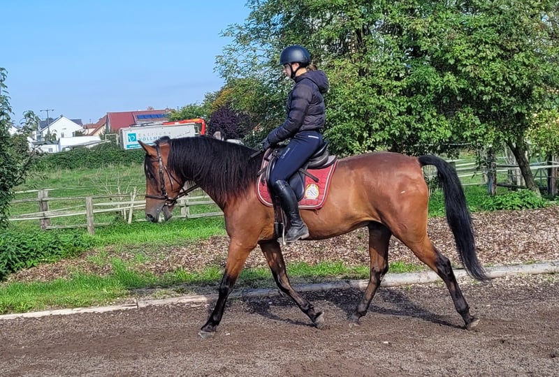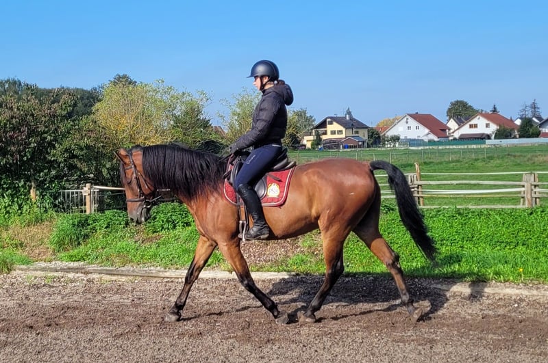 Imposante Erscheinung, Eleganz, Gelassenheit, Zuverlässigkeit ALEJANDRO ist ein wunderschöner, eleganter dunkelbrauner Andalusier Cruzado Wallach der Extraklasse, den wir uns auch gut unter einem Westernsattel vorstellen können. ALEJANDRO besticht nicht nur durch seine imposante Erscheinung, sondern auch durch seine Ruhe und Gelassenheit. Seine Coolness lassen auch einem noch etwas unsicheren Reiter sehr schnell Vertrauen zu diesem Prachtburschen fassen. ALEJANDRO verzeiht Reitfehler und pariert durch, wenn er merkt, dass sein Reiter unsicher wird. ALEJANDRO ist ein Pferd, dass auf seinen Reiter im wahrsten Sinne des Wortes aufpasst. ALENJANDRO ist sehr leichtrittig und äußerst bequem zu sitzen. Er ist sehr menschenbezogen und liebt es betüddelt zu werden. Besonders liebt er die Arbeit mit Kindern und Jugendlichen. Wir haben noch nichts entdecken können, was diesen Prachtburschen großartig aus seiner Ruhe bringen hätte können. Ob im Viereck, Allwetterplatz oder im Gelände, ALEJANDRO geht gut vorwärts, ist nicht triebig, aber auch nicht zu flott unterwegs. ALEJANDRO ist ein ideales Familienpferd, dass sich den Ansprüchen seines Reiters anpasst, der sich auf seinen Reiter einstellt. Nicht nur unter dem Sattel, sondern auch bei der Bodenarbeit und im alltäglichen Umgang vermittelt ALEJANDRO durch sein gutmütiges Gemüt Sicherheit und zeigt auch sein großes Vertrauen zum Menschen. Bei weiterer Ausbildung können wir uns ALEJANDRO auch sehr gut als THERA-Pferd oder auch als Lehrmeister im Schulbetrieb vorstellen. Ein Pferd, dass seinen Menschen nicht jeden Tag vor neue Herausforderungen stellt. Weitere Informationen über unsere Pferde und unsere Arbeit erhältst du unter www.ps-seitle.de gerne aber auch telefonisch unter 0171/5269002 Hubert Seitle 0151/12775701 Uta Großmann THERA-PFERDE PferdeSport Seitle im DONAUMOOS