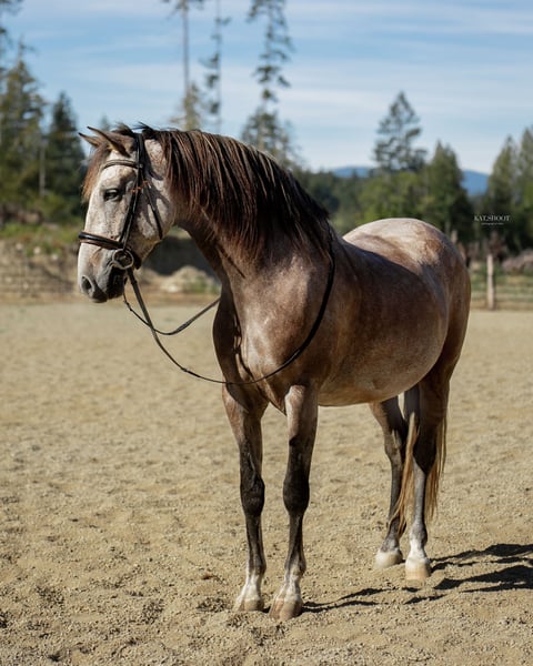 Looking for your next upper-level dressage partner? This 7-year-old Andalusian gelding, standing a solid 16hh, offers the brains, beauty, athletic ability, and trainability to go the distance. 🦄 Dressage Experience & Potential • Shown up to First Level with solid scores and show experience • Schooling Second and Third Level movements: shoulder-in, haunches-in, leg yields, walk-canter transitions, simple changes, early half-pass and more • Great sense of rhythm and uphill movement • Forward, sensitive, and comfortable in the contact without being hot or reactive • Shows strong potential for collected work and continued progression up the levels 🧠 Temperament & Handling • Calm, sensible, and not spooky – confidently hacks out alone or in company • No bite, buck, bolt, or rear • Very willing and loves to have a job – thrives in a consistent program • Great for farrier, bathing, and trailering – easy to handle on the ground and under saddle • A true gentleman with a kind, people-oriented disposition This gelding has been carefully developed with a correct foundation and is now ready to shine with an ambitious amateur or professional. Whether you're aiming for the show ring or looking for a classy, rideable partner, he’s the total package.
