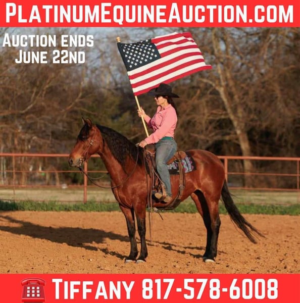 ONLINE AUCTION Place your bids at www.PlatinumEquineAuction.com Starting Bid $3500 Auction ends June 22nd, 2025 Need a new saddle? Check out White Rock Saddles on our website or Facebook! Bonita is a 9-year-old, 14.2h, fancy Andalusian-Cross mare. She is super gentle, loves being around people, and is user friendly for all ages. She has been all over Texas on working ranches and will pin her ears and watch a cow. She enjoys ranching but is an excellent trail mount too. She’s also been hauled to town, stays quiet around traffic and doesn’t meet a stranger. She is even incredibly fancy under English tack and would be an excellent dressage prospect. Bonita always has a great attitude and will stay broke even with time off. She does well turned out or in a stall, is a super easy keeper and up to date on everything. Give me a call to come meet this awesome gal. Tiffany Smith 817-578-6008 Located in Stephenville, TX. ONLINE AUCTION Place your bids at www.PlatinumEquineAuction.com Starting Bid $3500 Auction ends June 22nd, 2025 Need a new saddle? Check out White Rock Saddles on our website or Facebook!