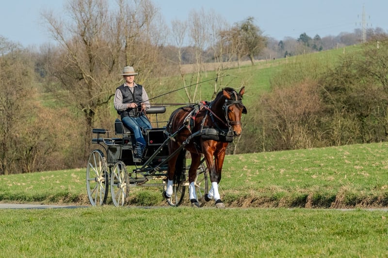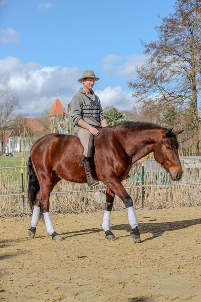 For sale is our 9-year-old dark bay Andalusian gelding with a height of 16.1 hh. The gelding is well-trained in dressage and is confidently driven in single and pair harness. He is traffic and trail safe, consistently reliable and balanced. He is easy to handle at the blacksmith and loading. In handling, he is friendly and uncomplicated. He is ridden by our children and is suitable for both leisure riding and ambitious sport. Social and well-mannered within the herd. Further information available upon request. Viewing and trial riding/driving by appointment.