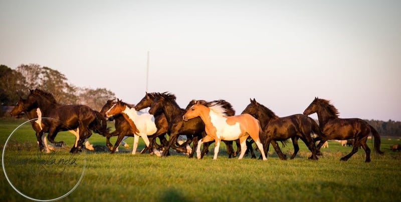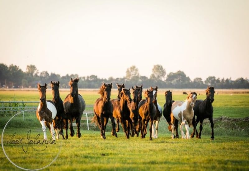This young man is truly something special to see! He is a beautiful dunskin (3-colored) with dorsal stripe and really beautifully marked. A real eye-catcher. He is looking for a nice, sweet carrot giver. We don't know exactly his parentage. Probably German Riding Pony x Barock pinto x Fjord. We estimate that he will grow to a height of around 1.50 to 1.55m. He knows the most important thing in horse life: the herd ABC. We only breed and do not train, so all our horses are still completely green and not yet used to the halter. The big advantage is that the horses are well socialized in the herd, have not had any bad experiences and you can teach them everything you want. Our horses have and give a lot of confidence and learn quickly. Every year we have approximately 40 beautiful Barock Pinto and Frisian foals for sale from our family stud farm in the Netherlands. And also older horses (0-13 years), all still green and untrained. We breed mostly without Studbookpapers, to keep the horses affordable. You will certainly find your dream horse with us. Our horses grow up very naturally in large herds and are therefore very well socialized. Here they lead a dream horse life: in large meadows in spring and summer. In winter in large group stables. A good character, cool, strong, healthy and sweet are important requirements for us in breeding. You will find us in Tzummarum, near Leeuwarden and we will be happy to meet you. Contact: it is best to call or via Whatsapp.