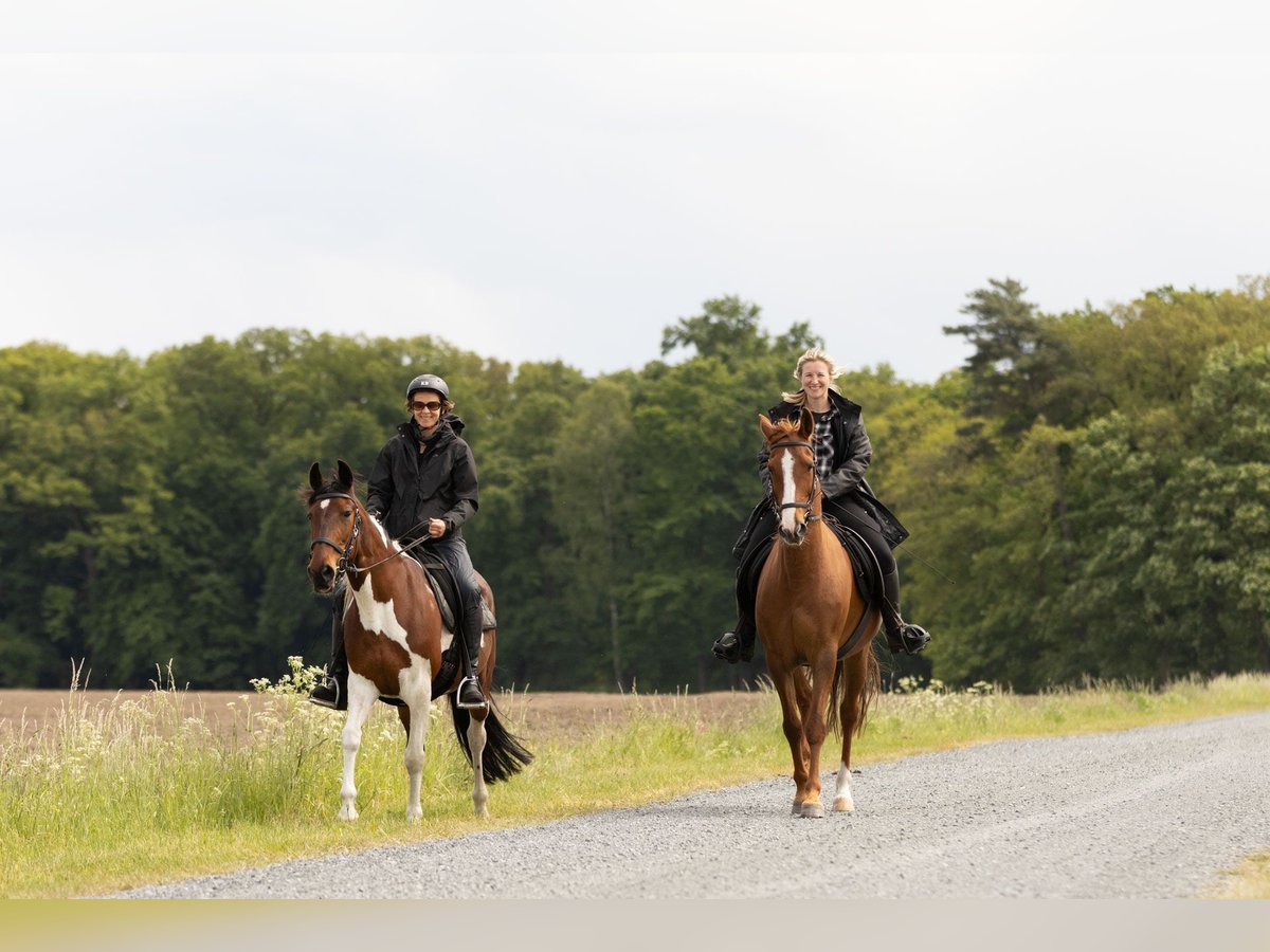 Groover tiene 10 años y mide 154 cm. Groovi es un caballo alerta y temperamental. Al mismo tiempo, es tranquila y enfocada en el trabajo. Tiene un gran movimiento y es hermosa; está dispuesta a hacer todo por su jinete. Puede adaptarse a cualquier situación y supera los obstáculos de nuestra vida cotidiana (puentes, agua, basura plástica) de manera dispuesta y cuidadosa. Groover aún está al principio de su formación como caballo de monta; hasta ahora, hemos estado montando principalmente con riendas largas al trote suave por el campo. De vez en cuando, ofrece un cómodo paso de cuatro tiempos, que hasta ahora solo hemos fomentado ocasionalmente. Desde el principio de su entrenamiento, ha mostrado una comprensión innata de las ayudas del jinete. Desea complacer y recuerda a un Border Collie con talento para el adiestramiento. En su estado actual de formación, a veces se sobresalta cuando algo la asusta. Sin embargo, no hace grandes saltos ni sale corriendo, sino que se corrige por sí misma y el jinete puede permanecer sentado sin intervención en las riendas largas, siempre que sea un jinete seguro de sí mismo. Esto significa que estamos buscando un jinete experimentado y tranquilo para Groover en su estado actual de formación, que no se estresse si el caballo se asusta de 0 a 3 veces por salida. Porque aunque se vuelve más segura con cada paseo y podemos asegurar que se convertirá en un caballo de confianza, dispuesto y fácil de montar, simplemente aún no ha llegado ese momento. Su padre es Orions Prides Storm Cloud y su madre es Tia Tattoo. Tiene documentos americanos de la RHBAA. Nuestros caballos solo se venden en condiciones donde tengan la oportunidad de moverse libremente y con otros caballos las 24 horas del día. Es importante para nosotros contar con suficiente espacio para cada caballo, para que también puedan galopar en el paddock en invierno, suficientes lugares de alimentación para la cantidad de caballos planeados, compañía adecuada las 24 horas y un refugio que ofrezca lugares suaves para descansar y protección contra las inclemencias del tiempo en todas las estaciones. Además, es importante para nosotros que nuestros caballos continúen siendo desparasitados adecuadamente varias veces al año y que reciban la inmunización contra el tétanos. Cuando nos contacten, les pediremos fotos de su instalación para ver si se dan las condiciones adecuadas para cada caballo. Así nos aseguramos de que nuestros caballos sigan siendo compañeros amigables, comprometidos y saludables para ustedes en el futuro. La venta sostenible de caballos es una cuestión de corazón para nosotros. En Instagram publicamos de vez en cuando videos de nuestros paseos con nuestros favoritos. Groovi suele estar presente. Pueden encontrarla en gangpferde_ribbesbuettel. Si su presupuesto es un poco más ajustado, tenemos una encantadora alternativa para los fans de Groovi: su hermana de sangre, Devlyn. Ella tiene 8 años, mide 150 cm y no ha sido trabajada tanto. Es hermosa, ama a las personas sobre todo y encanta a todos los que se cruzan en su camino.