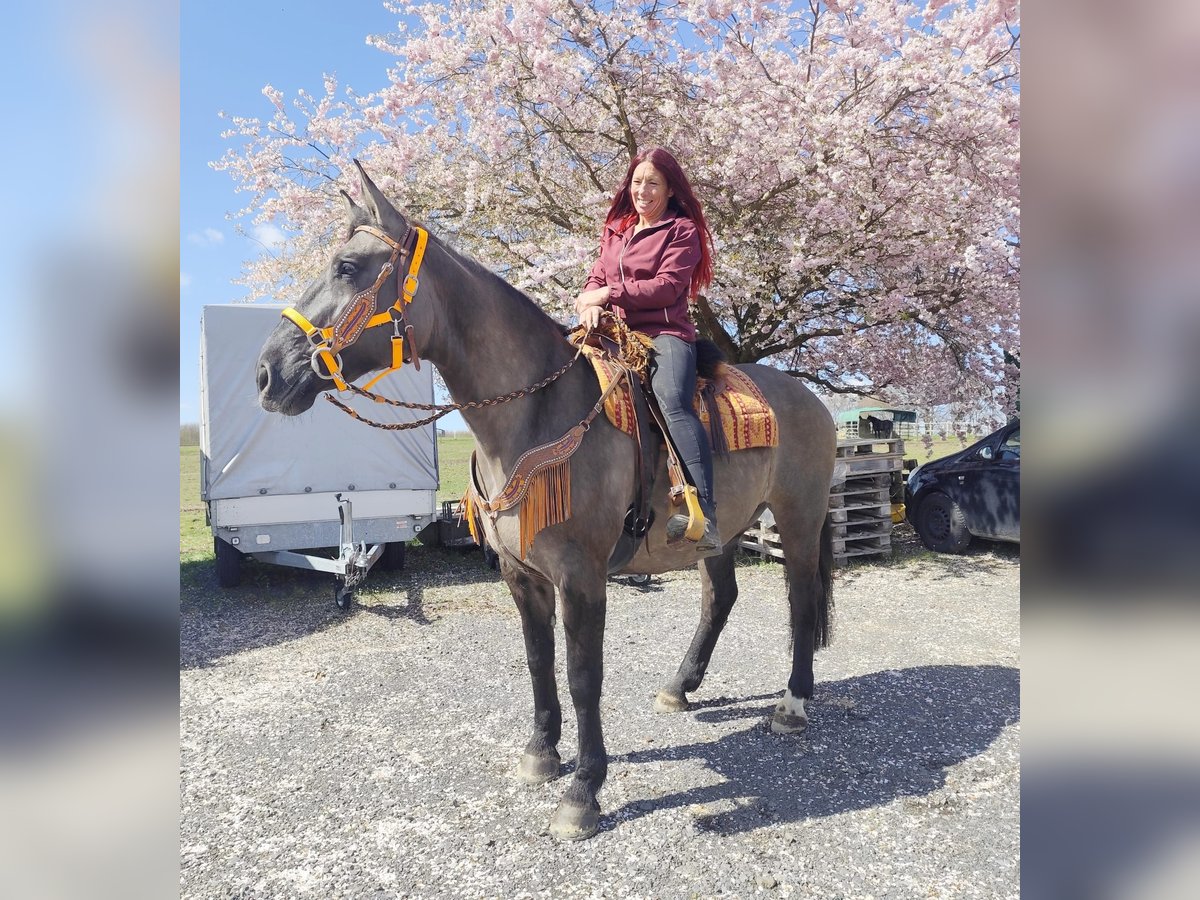 Wunderschöne Grullo-Stute – brav, zuverlässig & angenehm zu reiten Name: Malwina Alter: 11 Jahre Geschlecht: Stute Stockmaß: ca. 1,64 m Farbe: Grullo (Sonderfarbe) Preis: 7500,- AKU: vorhanden Beschreibung: Malwina ist eine wunderschöne, kräftige Stute in der Sonderfarbe Grullo. Sie überzeugt nicht nur optisch, sondern vor allem durch ihr ausgeglichenes und freundliches Wesen. Im täglichen Umgang ist sie absolut brav und unkompliziert. Putzen, Führen und Satteln verlaufen ruhig und problemlos – sie ist zuverlässig und angenehm im Handling. Auch unter dem Sattel zeigt sich Malwina von ihrer besten Seite. Sie ist super zu reiten, fein an den Hilfen und vermittelt ihrem Reiter ein sicheres und angenehmes Gefühl. Ihr ausgeglichenes Temperament macht sie zu einer tollen Partnerin für entspannte Ausritte und den Freizeitbereich. Geeignet für: Freizeitreiter, Wiedereinsteiger oder Reiter, die ein zuverlässiges und gutmütiges Pferd suchen. Pflege & Betreuung: – Regelmäßig entwurmt – Schmied gepflegt – Tierärztlich betreut Zusatzangebote: Sättel, Trensen und weiteres Zubehör erhältlich Service: – Transport kann organisiert werden – 3 Monate Umtauschrecht Proberitt: – 35 € (jedes weitere Pferd 25 €) – Wird beim Kauf am selben Tag angerechnet Preisnachlass bei sofortiger Mitnahme oder Transport am gleichen Tag: – Kategorie 1: 100 € – Kategorie 2 (ab 5.000 €): 250 € Telefon: 0171 – 4001968 Erreichbarkeit: täglich von 8–20 Uhr Keine E-Mail oder WhatsApp Alle Angaben ohne Gewähr