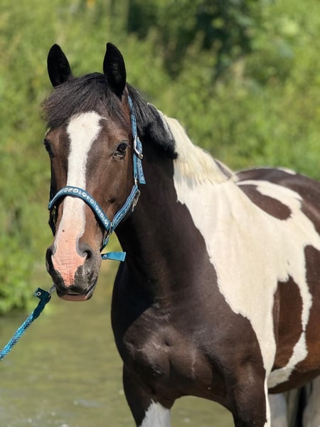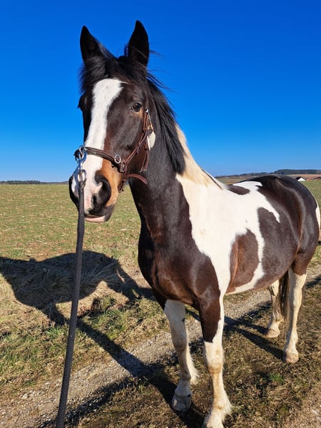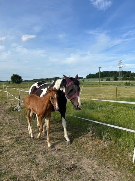 Looking for a loving forever home for my 11-year-old mare Frieda. (Height: 16.2 hh) Frieda is a very affectionate, friendly, and easy-going mare who truly enjoys contact with people and other horses. Due to a suspensory ligament injury in her left hind leg and osteoarthritis in her left front leg (CT scans available), she is no longer suitable for riding or bearing weight, but she moves pain-free at a walk. She is therefore ideal as a companion horse or as a broodmare for hobby breeders – she has foaled this year and has truly blossomed in her role as a mother. Frieda is absolutely gentle in handling, well-trained, and social within the herd. ✨ Important note: This is not an emergency sale – it is very important to me that Frieda finds a loving and suitable home. Priority goes to the well-being of the horse! If Frieda has caught your interest or if you have any questions, I look forward to hearing from you.