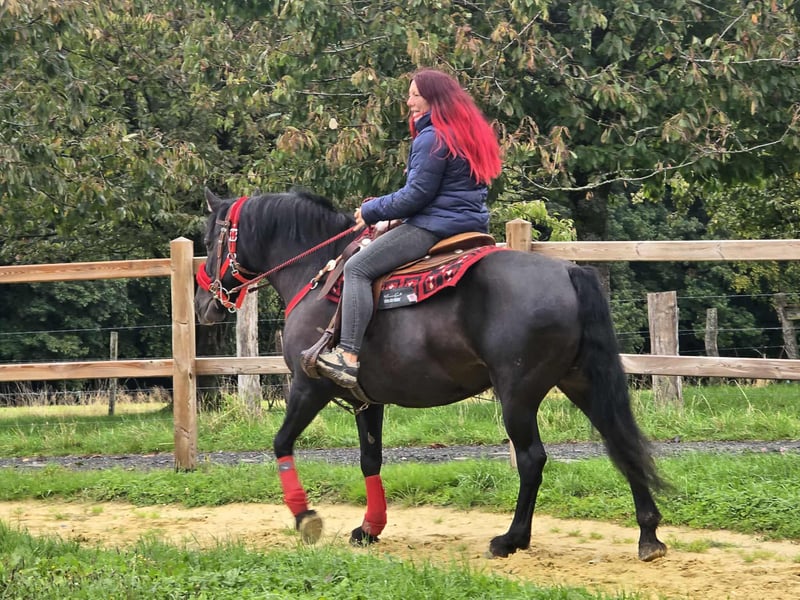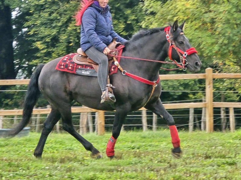 Beautiful, affectionate leisure - trail riding horse for sale! Born: 2014 Height: approx. 1.53 m Price: €6,800 NORA is a charming, well-built mare with a gentle nature and a balanced temperament. She impresses with her calm demeanor and an open, people-oriented character – ideal for anyone looking for a reliable leisure horse with a steady mind. Whether in the field, in the arena, or in daily handling: NORA always presents herself as friendly & cool. Her calmness and sure-footedness make her also ideal for trail riding. ✅ What NORA offers: Microchip and E-pass - veterinary check • Suitable for therapy • Very calm, fearless, and clear-headed • Well-behaved in daily handling (grooming, leading, saddling, etc.) • Good conformation • Current purchase examination available! • Great for leisure, family – and for trail riding – has all the prerequisites to be a loyal leisure partner Our horses – lovingly cared for: • Regularly dewormed • Checked and maintained by the farrier • Osteopathically checked if needed In our farm shop: used western saddles, bridles, halters, and much more. We are happy to organize accessories & transport for you at a reasonable price! Our service for you: So you can decide with a good feeling: • 3 months exchange right (contractually stipulated) • Trial ride possible: → €35 for the first horse, €25 for each additional one – credited if purchased on the same day • Spend time with the horse, riding, walking, or being ridden • €100 discount for immediate pickup or transport on the same day • Personal accompaniment & honest advice during the trial ride Interested? Then we look forward to your call: