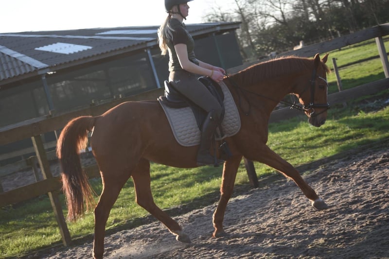 Wunderschöne, anfängersichere und erfahrene Reitpferdestute Dana ist wirklich ein Blickfang. Sie hat eine wunderschöne goldene Fuchsfärbung, eine elegante Konstitution und ein ansprechendes Köpfchen. Ihre Vorbesitzer haben hauptsächlich draußen mit ihr geritten. Dennoch hat sie hier von Anfang an im Dressurviereck sehr brav und zuverlässig gearbeitet. Sie wurde 2007 geboren, sieht aber top aus – man würde ihr dieses Alter auf keinen Fall ansehen. Dank ihrer Erfahrung ist sie ideal, um einen Reitanfänger sicher zu begleiten, oder auch für jemanden, der einfach ein unkompliziertes Pferd sucht. Dana ist ca. 1,60 m groß. Sie besitzt eine gute Abstammung: Dow Jones Courcel (AP) x Shardari x Little Credit. Es ist also durchaus möglich, dass sie noch ein Fohlen bekommt, falls man noch ein weiteres Nachwuchspferd bei ihr zeugen möchte. Wusstest du, dass Pferde bis ins hohe Alter trächtig werden können? Sie haben keine Menopause wie wir Menschen. Auf jeden Fall ist Dana eine perfekte Partnerin. Liebenswert, sozial, unkompliziert, bei uns und vorher auch trensport- und verkehrssicher. Preis: 3.950 € inklusive Markenreitkappe und kompletter Trense