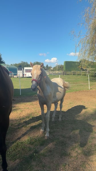 Guten Tag, ich verkaufe Plume EFJ. Sie ist eine Fohlen, geboren am 26. Januar 2025. Sie ist ein bezauberndes Mädchen, aber noch ein Baby. Sie hat bereits den Hufschmied und den Tierarzt gesehen. Sie ist aktuell bei den Impfungen und wäre perfekt für die Freizeitreiterei.