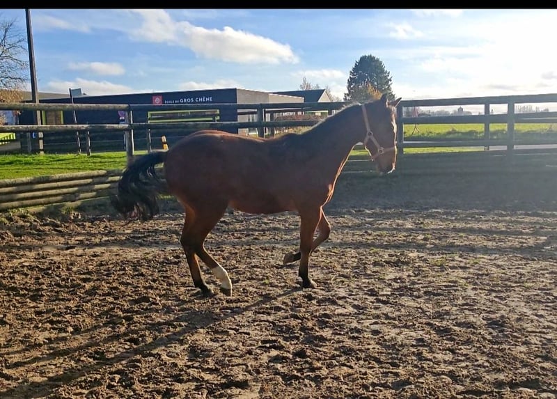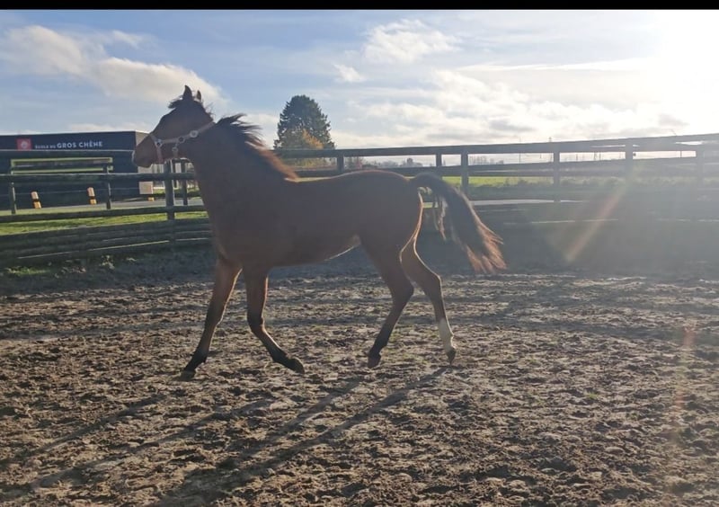 Très jolie pouliche AES, robe bai, âgée de 17 mois. Toisera approximativement entre 1m70 et 1m80 Elle vit au box et prés/ paddock Roxane est une jeune jument avec du sang, curieuse, franche et désireuse d’apprendre. Elle est manipulée régulièrement, pansée, marche en main et a déjà commencé le travail à pied ainsi que les balades en main. Très réceptive et proche de l’homme, elle montre un excellent mental pour progresser dans la confiance. Pour cavalier confirmé.... 🔹 Origines : Père : Cool Blue T, fils du célèbre Q’Chacco Blue Mère : Roxette, par Mc Fly De très bonnes origines pour le sport, avec un mental équilibré et des allures prometteuses. Partira pour très bonne maison 📍 Visible à région Liégeoise 💰 10.000€ à discuter légèrement 📞 Contact : uniquement par mail magali-n28@hotmail.be et par message sur ce site .... Visiste sur rendez-vous....