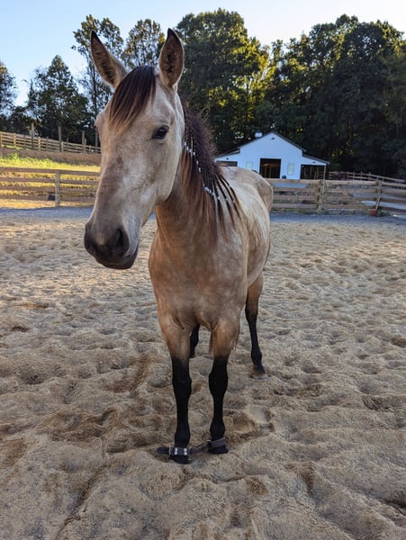 3yr old quarter horse draft cross. This beautiful buckskin is fresh out of her 60 days in training and is looking for her new home. She would be a great ranch riding prospect for someone. She turns on haunches, is a beautiful mover, side passes, will do flying lead changes just needs consistency, will collect, soft and supple, calm mind, hobble trained, and works the same outside of an arena. Very confident, willing, and good looking mare. She is solid, quiet and calm, walk, trot, canter, all on a loose rein in an arena or in a field. Stands at 15.1-2hh. Leads, loads, hauls, stands tied, UTD on farrier, vaccines, dewormer. 100% sound, PPE welcome. Contact at ↓↓ ◾423-930-6022 📍 Jonesborough TN