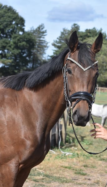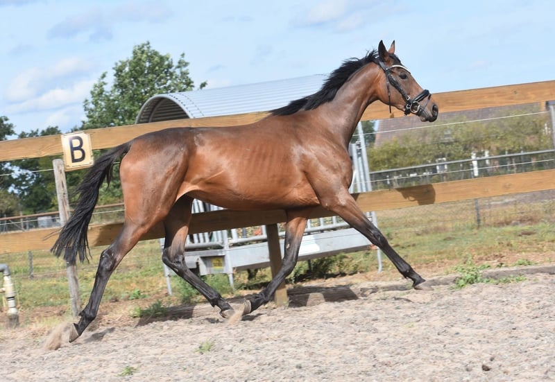 Here is Yvy, a stunning young mare aged 3.5 years with an approximate height of 1.55 m (16.1 hh). She is sired by Doyen out of Little Nugget. She has a chic, elegant build and is sure to attract attention as soon as you enter the stables. She has a very sweet and honest appearance. Yvy has three fantastic gaits, making her suitable for multiple disciplines. Despite her young age, Yvy handles her work here very well. She enjoys working with her rider and makes every effort to understand her tasks. Currently, she is being ridden dressage and recreationally, showing a pleasant attitude and lots of potential. She is completely sound and free of any defects. Price: €3,950 – including brand saddle and saddle pad. Yvy has been tested and approved for recreational riding, including blood tests. For better results in the inspection, it would be helpful if she were to wear shoes at the front (due to sensitive soles).