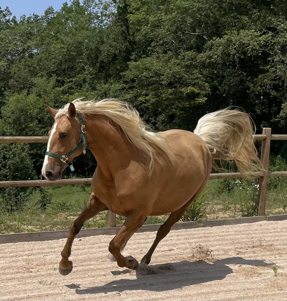 Un cadeau de la Vie qui se prénomme Loréa Dos Prados...💝 ❣️Ce qui la caractérise : la beauté, le charisme, la subtilité, l'intelligence, la pétillance, la facilité de lien avec les humains... ❣️Loréa est une jument exceptionnelle, en quête de son humain(e) de cœur qui saura voir en elle l'être merveilleux qu'elle est. La Belle aspire à un lien privilégié avec son humain(e), tout en conscience, pour une vie riche en expériences et en amour partagé. ❣️Loréa est née le 19 février 2021 et a des papiers OC. Elle est la fille de Romane (photo ci-dessous), hispano-barbe-arabe (de son vrai nom Romance) par Djebel Des Balmes (AB), et de Sénador Dos Prados (photo ci-dessous), étalon pp Crème d'origine Lusitanienne, champion de France des 2 et 3 ans en 2008 et 2009 et vice-champion des mâles en race Crème en 2010. ❣️Elle mesure 1m60 et a une sublime robe palomino cuivrée. Elle a un corps harmonieux et de belles allures amples et élastiques. ❣️Dotée d'une grande facilité d'apprentissage, toujours très curieuse et enthousiaste, elle sera une jument très polyvalente. Le débourrage sera d'ailleurs pour elle une formalité. ❣️Loréa aspire à une vie en troupeau en plus de son lien unique avec sa ou son humain(e). Elle vit en troupeau depuis toujours, éduquée par ses parents, et entourée par sa famille. ❣️Elle bénéficie d'une alimentation de très bonne qualité, ainsi que des soins réguliers en ostéopathie, en soins énergétiques et en communication animale. Elle est bien sûr vermifugée, parée et a déjà vu le dentiste. ❣️Si Loréa touche votre cœur, avec plaisir pour vous accueillir et venir la rencontrer sur son lieu de vie en Ariège. 🙏Plus de renseignements en MP ou au 0616824610