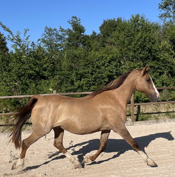 Ein Geschenk des Lebens, das den Namen Loréa Dos Prados trägt...💝 ❣️Was sie auszeichnet: Schönheit, Charisma, Subtilität, Intelligenz, Spritzigkeit, die Leichtigkeit im Umgang mit Menschen... ❣️Loréa ist eine außergewöhnliche Stute, auf der Suche nach ihrem menschlichen Herz, der/die in ihr das wunderbare Wesen erkennen kann, das sie ist. Die Schöne strebt nach einer besonderen Verbindung zu ihrem Menschen, ganz bewusst, für ein Leben voller Erfahrungen und geteilter Liebe. ❣️Loréa wurde am 19. Februar 2021 geboren und hat Papiere als OC. Sie ist die Tochter von Romane (Foto unten), einer Hispano-Araber-Stute (mit vollem Namen Romance) von Djebel Des Balmes (AB), und von Sénador Dos Prados (Foto unten), einem pp Crème Hengst mit lusitanischer Herkunft, der 2008 und 2009 französischer Meister der 2- und 3-Jährigen und 2010 Vize-Meister der männlichen Crème-Rasse war. ❣️Sie misst 1,60 m und hat ein wunderschönes kupferfarbenes Palomino-Fell. Sie hat einen harmonischen Körper und schöne, weitläufige und elastische Bewegungen. ❣️Mit einer großen Lernbereitschaft, immer sehr neugierig und enthusiastisch, wird sie eine sehr vielseitige Stute sein. Das Anreiten wird für sie eine Formsache sein. ❣️Loréa strebt neben ihrer einzigartigen Verbindung zu ihrem Menschen ein Leben in der Herde an. Sie lebt seit jeher in der Herde, wurde von ihren Eltern erzogen und ist von ihrer Familie umgeben. ❣️Sie erhält eine sehr hochwertige Fütterung sowie regelmäßige Behandlungen in Osteopathie, energetischer Pflege und tierischer Kommunikation. Sie ist natürlich entwurmt, beschlagen und war bereits beim Zahnarzt. ❣️Wenn Loréa Ihr Herz berührt, freuen wir uns darauf, Sie willkommen zu heißen und Sie an ihrem Lebensort in der Ariège zu treffen. 🙏Weitere Informationen gerne per PN oder unter 0616824610.