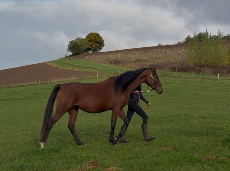 Deutsches Edelblut / Shagya-Araber • Braun • geb. 2021 • ca. 161 cm • tragend von Kosmos al Samarra ⸻ ✨ Beschreibung Izabella al Samarra ist eine beeindruckende, junge Verbandsprämienstute mit edlem Auftreten und exzellenter Abstammung. Sie stammt aus unserer Zucht (Samarrastud) und ist geprägt von dieser: Leistung, Charakter und Ausstrahlung. Sie wurde bereits als Fohlen mit 3* bewertet und 2025 selbst Mutter eines wunderbaren Fohlens – Isaiah, bewertet mit 2* (Vater Kosmos al Samarra) Izabella ist tragend vom Shagya-Hengst Kosmos al Samarra, einem leistungsgeprüften und gekörten Distanz- und Sporthengst bekannt für seine Kraft, Nervenstärke und hervorragende Rittigkeit. Auch ist er Verbandsprämienhengst und läuft international im distanzsport bis hin zum Sieg über CEI**. Bedeckung erfolgte am 17. April 2025 – Abfohlung erwartet im Frühjahr 2026. ⸻ 👑 Abstammung Vater: Tolstoj al Samarra ShA – gekörter und leistungsgeprüfter Shagya-Araberhengst mit enormer Präsenz, hervorragendem Fundament und exzellenter Nachzuchtbewertung. Bekannt für seine Rittigkeit, Klarheit im Kopf und starke Vererbung von Typ und Ausdruck. Mutter: Isabeau DE (Deutsches Edelblut) – großrahmige, ausdrucksstarke Distanzstute mit internationaler Erfahrung (mehrfach CEI1* platziert, u. a. Platz 5 & 6 über 100 km). Eine sanftmütige, feinfühlige und leistungsbereite Stute, die bereits als Mutterstute überzeugt. Tragend von: Kosmos al Samarra ShA – gekört & leistungsgeprüft (ZSAA), Distanzsport CEI 2*, sehr erfolgreich im internationalen Einsatz, vererbt starken Typ, gutes Fundament und dabei ein sehr robustes und sanftes Wesen. ⸻ 🐴 Charakter & Auftreten Izabella zeigt bereits jetzt die edlen Merkmale ihrer Eltern: Sie ist eine charmante, sanfte und menschenbezogene Stute, dabei aufmerksam und lernfreudig. Mit mütterlichen und feinem Ausdruck, aber mit stabilem Fundament und harmonischem Körperbau. Eine sehr ausdrucksstarke und temperamentvolle Stute die das Herz am rechten Fleck hat. Sie fühlt sich sehr wohl in der Herde, ist freundlich im Umgang und zeigt sich sehr sozial in ihrer Gruppe. Charakterlich steht sie ihrer Mutter Isabeau in nichts nach – sanft, aufmerksam, aber mit Temperament und Präsenz. ⸻ 🌿 Zucht & Nachzucht • Verbandsprämienstute • Als Fohlen mit 3* bewertet • 2025: Erstes Fohlen Isaiah al Samarra (bewertet mit 2*), steht ebenfalls zum Verkauf • Tragend seit 17. April 2025 vom Hengst Kosmos al Samarra ShA • Erwartetes Fohlen Frühjahr 2026 • Abstammung durchgehend leistungsgeprüft & gekört ⸻ 🩷 Besonderheiten Izabella bietet alles, was man sich für eine junge Zucht- und Reitstute wünschen kann: edle Abstammung, Leistungsnachweise über mehrere Generationen, Charme, Sanftmut und hervorragende Vererbung. Sie ist aktuell 4 Jahre alt (geb. 2021), wird 2026 5, und entwickelt sich zu einer großrahmigen, harmonischen Stute mit viel Ausdruck. Mit ihrer Abstammung ist sie sowohl für Zucht, Distanzsport als auch als zukünftige Reit- und Freizeitpartnerin hochinteressant. Bild 2- Sie als Fohlen Bild 4 - ihre Mutter Isabeau DE Bild 5 - ihr Vater Tolstoj al Samarra ShA Bild 6 - Vater der Fohlen Kosmos al Samarra ShA Dies ist KEIN Notverkauf. Wir suchen den absolut richtigen Platz für sie!