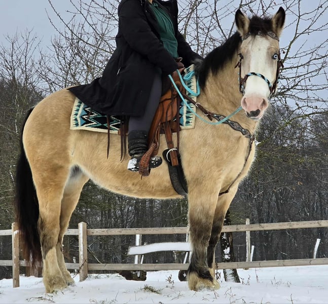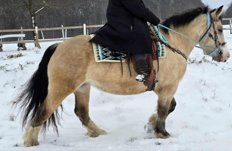 Barocke Stute in Sonderfarbe (Falbe mit blauen Augen) – brav, verspielt & vielseitige Freizeitpartnerin LUCIE Alter: 5 Jahre Stockmaß: ca. 1,54 m Preis: 6900,- AKU: vorhanden ✨ Beschreibung: Diese wunderschöne barocke Stute in besonderer Sonderfarbe (Falbe, blauäugig) begeistert nicht nur optisch, sondern auch durch ihr liebes, ausgeglichenes Wesen. Trotz ihres jungen Alters ist sie bereits sehr brav im Umgang und zeigt sich unter dem Sattel nett, kooperativ und angenehm zu reiten. Sie ist für jeden Spaß zu haben, motiviert und offen für Neues. Ob auf dem Reitplatz oder im Gelände – sie macht alles aufmerksam, zuverlässig und gelassen mit und bleibt dabei stets unkompliziert. Eine tolle Stute für Reiter, die ein junges, aber dennoch entspanntes Pferd suchen, mit dem man gemeinsam wachsen, Spaß haben und viele schöne Stunden verbringen kann. 🐎 Ideal für: Freizeitreiter, ambitionierte Allroundreiter die eine brave, vielseitige und charakterstarke Stute suchen. 🩺 Unsere Pferde werden regelmäßig: – entwurmt – vom Schmied betreut – osteopathisch kontrolliert 🚛 Transport kann auf Wunsch günstig organisiert werden 📞 Anfragen bitte ausschließlich telefonisch: 0171 – 4001968 🕗 täglich erreichbar von 8–20 Uhr ⚠️ Keine E-Mail oder WhatsApp ⚠️ Alle Angaben ohne Gewähr