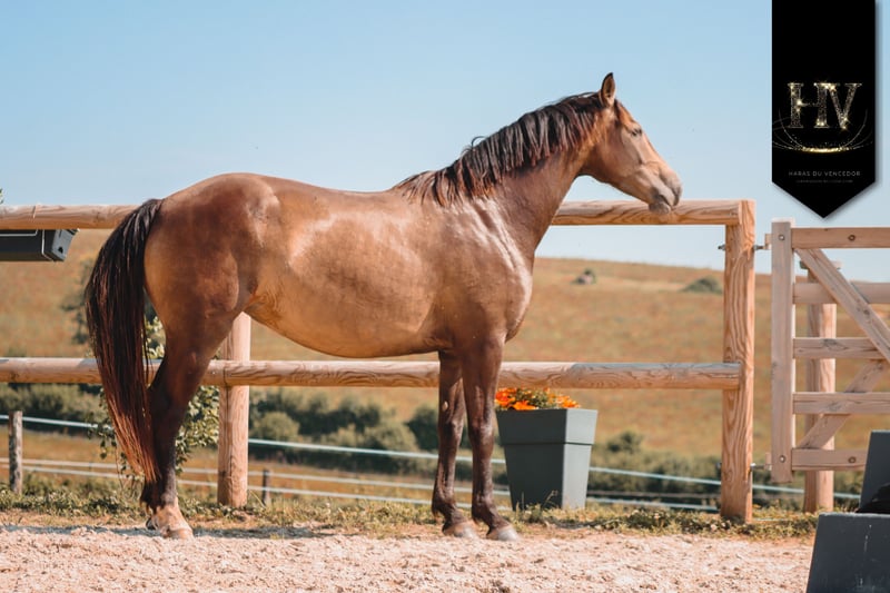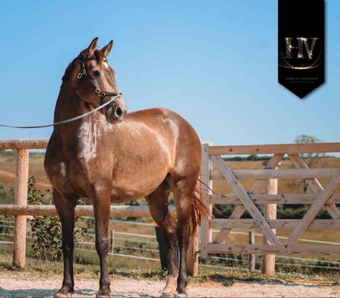 ✨ KALIFORNIA DU VENCEDOR ✨ (Nom officiel : Kietoile du Vencedor) 🖤 Jument AES • Née en 2020 💎 Une jument d’avenir, alliant génétique d’exception et mental remarquable • Non débourrée • Gestante pour 2026 • Disponible au sevrage de son poulain 2026 🌿 Mental & aptitudes Kalifornia séduit par son caractère particulièrement facile et attachant : ▸ Jument proche de l’homme ▸ Équilibrée, sereine, sans peurs ▸ Du sang… intelligent Elle présente trois très bonnes allures, avec une aptitude naturelle pour le sport, mais présente également de très gros atouts pour la reproduction. 🧬 Origines de premier plan Fille de Brume (Ibérique) & de Kjento 🏆 Champion du Monde des 6 ans & 7 ans 🌍 Étalon à la renommée internationale 🎯 Pour quel projet ? ✔️ Élevage de qualité ✔️ Projet sportif (dressage, équitation de travail, loisir haut de gamme) ⚠️ À noter • Pas de radios réalisées mais possibilité d'en faire à l'élevage.