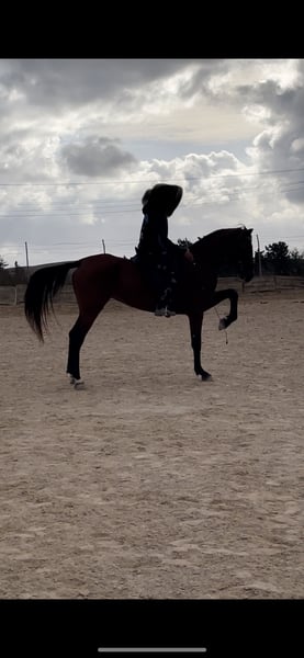 Verkauft wird eine kastanienfarbene Kreuzungsstute, geboren 2019, 165 cm groß an der Widerristhöhe. Sie ist sehr liebenswert und wurde erfolgreich im klassischen Dressur- und Vaquero-Training geritten. Sie zeigt seitliche Übungen wie Rücken-in, Hüfte-in und beginnt mit Unterstützung. Zudem wurden fliegende Wechsel und spanischer Schritt eingeführt. Diese sehr ausdrucksstarke und arbeitsame Stute ist perfekt, um mit viel Herz und Noblesse weitergeführt zu werden. Sie hat ohne Probleme Ausritte, Fahrten und Veranstaltungen wie San Anton absolviert. Es handelt sich um eine wirklich beeindruckende Stute. Weitere Infos auf Anfrage.