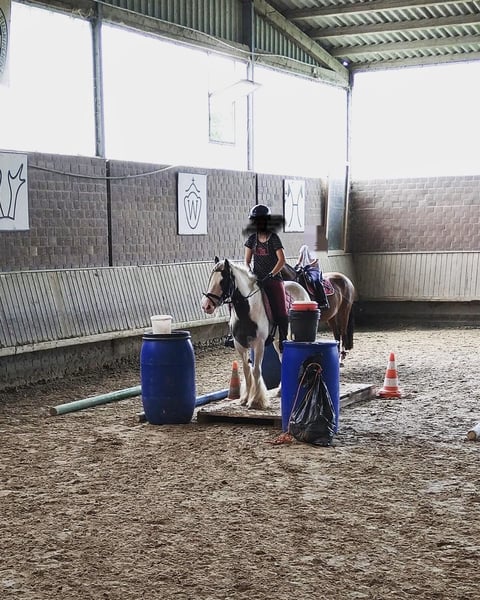 Wij verkopen onze merrie "Buttercups" omdat ze permanent niet optimaal geschikt is voor het lesgeven. Als een beginner het evenwicht verliest, zich vastklemmt of aan de teugel vasthoudt, raakt ze bang en gaat ze galopperen. Ze is een heel vriendelijk pony en wil niets verkeerd doen. Ze heeft wedstrijdervaring in de ruiterwedstrijd, springwedstrijd en Caprilli-test (momenteel geplaatst!). Ze loopt goed in de menigte en ook vooraan / alleen. Ze kan zonder zadel gereden worden, wordt graag buiten gereden, laat zich braaf poetsen en leiden, en is niet longeerbaar bij ons. Accessoires kunnen tegen een kleine meerprijs mee gekocht worden. Ze is bij ons smid- en trailer-entrainiert. Ze loopt op hoefijzers, maar is ook hoefbevangen. Sinds juli 2023 bij ons (uit Ierland geïmporteerd), sindsdien 3 keer per jaar ontwormd en gevaccineerd tegen tetanus en influenza. Ze woont bij ons in een kleine paddock met uitloop, maar stalling in een box is ook geen probleem. Buttercups is geschikt voor kinderen en jongeren die een ontspannen rijstijl hebben. De angst van de ruiter wordt overgedragen op de merrie. Ze is bij ons gereden en gesprongen door kinderen tussen 9 en 17 jaar. We zoeken een liefdevol thuis voor dit schattige pony!