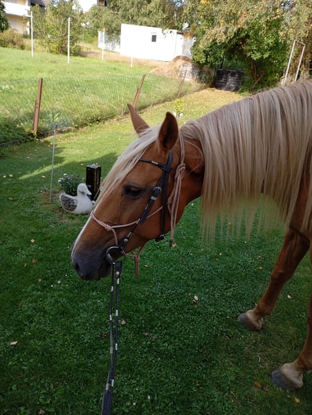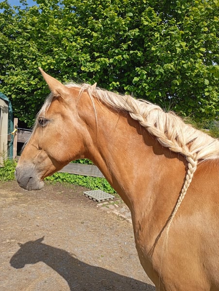 This pretty mare is looking for a new carrot giver. She is 8 years old and stands at approximately 16.1 hands (160 cm). The mare is ridden for leisure and performs excellently with her floating boots. "Princess" is sensitive, responds to the lightest aids, is very people-oriented, and loves children. She is also familiar with dogs. It takes her a little time to trust, but once she does, she will do anything for her person. She enjoys groundwork and always wants to please. Since she is a bit insecure herself, she needs a rider who can boost her confidence and is self-assured. I have never experienced her rearing or bucking. Princess is traffic-safe, trail-safe, and well-behaved for the farrier and loading. She really enjoys various activities. In summer, she loves to be showered and has even splashed around in the Nister. Her teeth were floated this year, and her vaccinations have been updated. We also ensure regular deworming! ☺️ Unfortunately, I have to part with her for health and time reasons. I wish for her to have a lifelong home, preferably in an open stable, group housing, or at least a large paddock box with daily turnout. Currently, she lives in an open stable with access to a paddock and pasture. She is currently being ridden by her 14-year-old wonderful riding partner. The Spanish mare does not like wet and cold weather, so she is blanketed when the temperature drops below 46°F (8°C). ❣️ Definitely prioritizing a good home over price ❣️ A thorough introduction is desired! If you are interested, feel free to reach out! ☺️