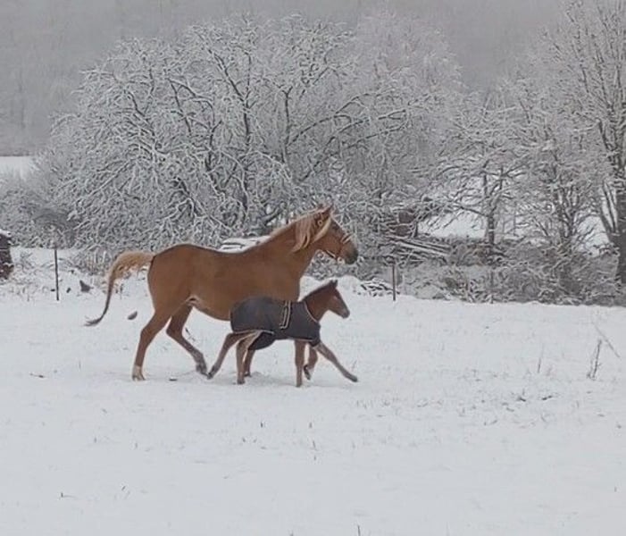 Cette jolie jument est à la recherche d'un nouveau donneur de carottes. Elle a 8 ans et mesure environ 160 cm. La jument est montée pour des loisirs et se déplace très bien avec ses Floating Boots. "Princess" est sensible, réagit aux aides les plus fines, est très proche des humains et adore les enfants. Elle connaît également les chiens. Il lui faut un peu de temps pour accorder sa confiance, mais une fois qu'elle l'a fait, elle fera tout pour son humain. Elle prend plaisir au travail au sol et souhaite toujours plaire. Étant un peu hésitante, elle a besoin d'un cavalier qui saura lui donner confiance et qui est sûr de lui. Je n'ai jamais observé de comportements de montée ou de cabrioles chez elle. Princess est sûre en circulation et en extérieur, ainsi que bien manipulable pour le maréchal-ferrant et le transport. Elle apprécie vraiment les propositions d'activités. En été, elle adore se faire doucher et a déjà barboté dans la Nister. Ses dents ont été raspées cette année et sa vaccination a été mise à jour. Nous faisons bien sûr également des vermifuges réguliers ! ☺️ Malheureusement, je dois m'en séparer pour des raisons de santé et de temps. Je souhaite pour elle un foyer à vie. De préférence en stabulation libre, en stabulation active ou au moins une grande box avec accès quotidien à un paddock. Elle vit actuellement dans un enclos ouvert avec paddock et accès à un pré. Elle est actuellement montée par sa super cavalière de 14 ans. La jument espagnole n'aime pas le temps humide et froid, donc je la couvre lorsqu'il fait moins de 8 degrés. ❣️ Un bon placement avant le prix ❣️ Une rencontre approfondie est souhaitée ! Si vous êtes intéressé, n'hésitez pas à me contacter ☺️ !