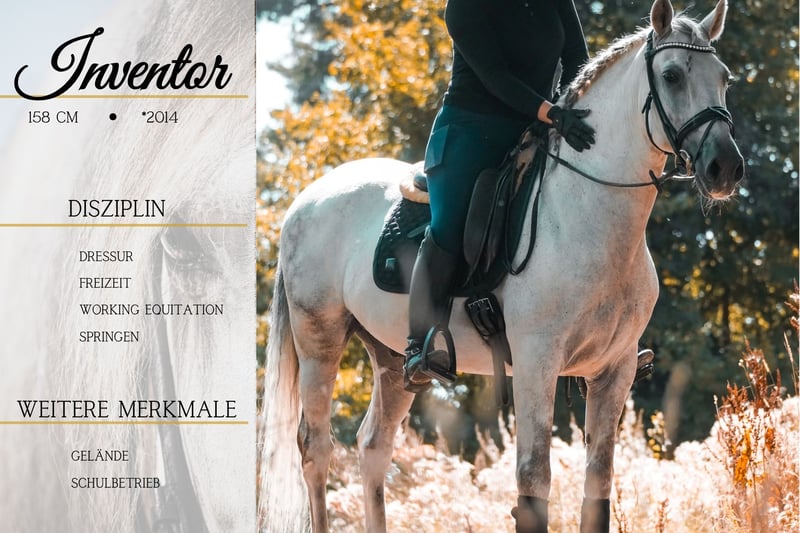 Inventor is a 2014-born gelding approximately 1.58 m (16.1 hh). *Inventor* is a stunning, exceptionally rideable gelding. Well-trained and suitable for all kinds of fun rides. He moves beautifully in the arena and on the outdoor course, performing excellent lateral work. He is very brave in the field, both alone and in a group, as well as in unfamiliar surroundings. Comfortable to sit on and very easy to ride in contact. Simply a dream horse! !!! BE SURE TO WATCH HIS VIDEO !!! We have taken him out into the terrain effortlessly with drone and quad, and he has also led young, inexperienced horses as a lead pony. He is well-behaved in handling. He already has a current comprehensive health check (clinical exam & X-rays). He is incredibly sweet and has a very honest nature. Unfortunately, he is being sold at a price far below his value because he struggles with constant testing and many different riders. This causes him increasing stress. Therefore, he is being sold without trial rides, to the best hands. Please refrain from inquiries asking if trial rides are possible. A current video can be found in the ad or at the following link: https://www.youtube.com/watch?v=Jvkc9j3DGfc Horse Dealership Dederichs – Your Partner for Horse Buying Contact & Availability: Please contact us exclusively by phone at 0173/9792139 Monday – Friday: 09:00 – 18:00 Saturday: 09:00 – 15:00 Sunday: Closed Follow us on social media! Experience our daily work with sale horses on Instagram, TikTok & Facebook under Pferdehandlung Dederichs Discount: Immediate pickup of your new dream horse entitles you to a 5%–10% discount. Trial riding & demonstrations: • Trial ride: €40 per horse (up to 2 riders), amount will be credited upon purchase • Holidays: trial ride €50 • Demonstration by our trainers: €30 per horse (including groundwork, lunging, etc.) Pre-purchase examination & transport: • Many of our horses already have a health certificate (AKU) • You are welcome to bring your own veterinarian • We can organize an examination for you • We also gladly assist with transport to your new home Other sale horses: We have additional horses available that are not yet listed online. If your dream horse is not among them, do not hesitate to contact us. Important notes: • Estimated height measurements are approximate and not precisely taken • All descriptions are subjective assessments by the seller and do not constitute guaranteed properties