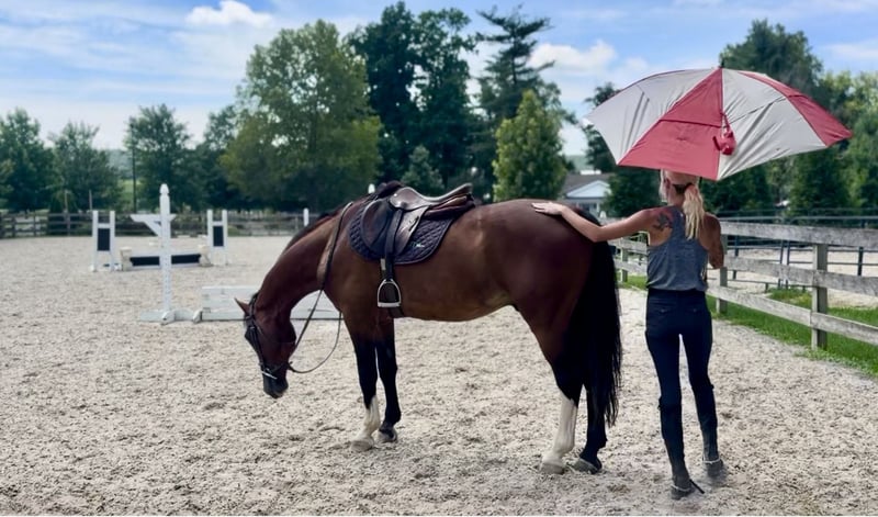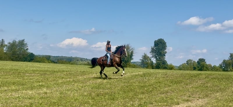 On the ground, he’s a total lovebug. Cuddly, sweet, and the kind of horse that will let you brush him for hours while making weird happy faces. Under saddle? Well… he’s fun. The “challenging in a character-building way” kind of fun. If you’re looking for a horse that’ll keep you humble, teach you lessons, and possibly make you laugh-cry mid-ride — congrats, you’ve found your match.
