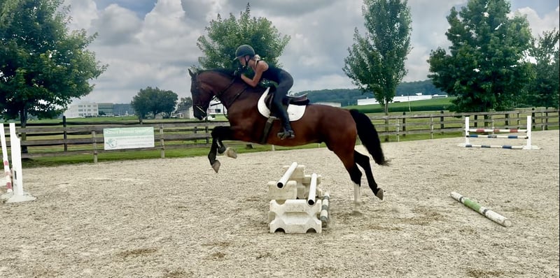 Now listen: Harmony can do flatwork. He just doesn’t love it. Think of it as asking your class clown to do taxes. Doable? Yes. Joyful? Not exactly. But throw a jump in the mix and suddenly he’s got “happy ears” and is ready to show off. He lives for jumping and will lock on to a fence like it personally insulted his ancestors. He’s honest, scopey, and could probably jump your car if given the chance.