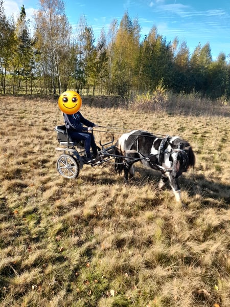 Mein kleiner Schelm verdient einen Platz, an dem er wieder volle Aufmerksamkeit erhält. Lernen Sie Sky kennen, einen 14-jährigen Kreuzungs-Pony A. Er ist 1,15 m groß. Er wird nur in ein dauerhaftes Zuhause vermittelt, das perfekt zu ihm passt. Er hat bereits mein Herz erobert. Da mein junges Pferd nun eingeritten ist, habe ich einfach zu wenig Zeit, um auch regelmäßig mit ihm mit der Sulky unterwegs zu sein. Sky ist ein anhängliches Pony, das gerne bei dir ist. Als er zu mir kam, litt er sehr unter Trennungsangst. Glücklicherweise hat er mit viel Geduld keine Probleme mehr damit. Natürlich hinnert er, wenn er allein ist, aber die Fäden bleiben jetzt ganz XD. Er ist ein echter Blickfang. Ein wunderschöner schwarz-bunter Hengst mit langen Mähnen und einem halb Maanoog, links. Er liebt Essen, daher hat er manchmal einen kleinen Bauch, haha. Was mag er am liebsten? Vor allem Kuscheln! Bodenarbeit und Fahrten mit der Sulky. Allerdings hat Herrchen eine Gebrauchsanweisung. Er hat in seinem Leben nicht immer das Beste erlebt, deshalb gibt es auch Tage, an denen er stehen bleibt, keinen Schritt mehr macht oder bockt. An anderen Tagen läuft er wieder wunderbar vor der Sulky. Am liebsten unternimmt er Ausritte mit anderen Pferden, er kann allein etwas unsicher sein. Wenn jemand vor ihm geht, ist das kein Problem, und wenn er einen guten Tag hat, kann er auch mal alleine unterwegs sein. Als Sky zu mir kam, war er sehr kopfscheu und hatte Angst vor Peitschen, das ist heute kaum noch zu merken. Er konnte kein Gebiss vertragen, daher bin ich mit ihm gebisslos weitergeritten. Ich habe nie wieder versucht, mit einem Gebiss zu arbeiten. Ohne geht auch prima. Vielleicht ist das inzwischen wieder möglich, aber für mich war es nicht notwendig. Er ist nicht leicht zu erschrecken. Große landwirtschaftliche Fahrzeuge, schnell vorbeifahrende Autos etc. sind kein Problem. Wenn er sich jedoch nicht wohl fühlt, kann er alles nutzen, um vor Schreck zu springen. Er ist auch eingeritten, aber unter dem Sattel ist er launisch. Er läuft lieber vor der Sulky oder bei Bodenarbeit. Springen über Hindernisse findet er super. Im Offenstall auf dem Rücken zu sitzen, ist für ihn auch in Ordnung, einfach zum Spaß. Das findet er auch prima, dann ist er mit kleinen Kindern vertraut. Für intensives Ritten ist er weniger geeignet. NICHT FÜR ANFÄNGER GEEIGNET! Nur für einen sicheren Reiter, der ihn liebevoll, aber bestimmt behandelt. Sky ist seit 2015 bei mir. Ich habe ihn vom verängstigten und unsicheren jungen Pferd zu einem Pony entwickelt, das das Leben genießt. Er fühlt sich wohl und ist gern der Macho in der Herde. Er ist kein gewöhnliches Pony, sondern einzigartig. Manchmal kann man ihn kaum ertragen, manchmal bringt er einen zum Lachen. Sky sucht eine Besitzerin oder einen Besitzer, der damit umgehen kann, dass mit ihm kein Tag wie der andere ist. Der ihm ein warmes Zuhause geben kann, in einer Herde, in der er seinen Platz findet. Er braucht andere Pferde um sich, mit denen er unterwegs sein kann. Wenn er merkt, dass wir in den Wald reiten, wird er schneller. Das genießt er sichtbar. Ich wünsche ihm so sehr ein dauerhaftes Zuhause, in dem er mehr Aufmerksamkeit bekommt, als ich ihm momentan geben kann. Er ist nämlich ein echtes Herzchen. Es ist für ihn nicht fair, immer nur die letzte Wahl zu sein. Aber er ist glücklich hier und vergnügt sich auch bestens auf der Weide und bei den Runden mit der Sulky, sodass er nicht unbedingt weg muss. Er steht momentan immer draußen, dort fühlt er sich am wohlsten. Natürlich mit einem Unterstand und einer Herde, die auch gerne draußen mit ihm spielen. Denn spielen liebt er auch. Lächelst du, wenn du das liest? Du bist jederzeit herzlich eingeladen, vorbeizukommen und mit ihm zu kuscheln. Vielleicht ist Sky ja das Pony, das du gesucht hast. Er ist immer pünktlich geimpft, entwurmt (wenn nötig) und beim Hufschmied gewesen. Er ist ein gesundes und fittes Pony, vielleicht hat er momentan ein bisschen zu viel Fett (a). Es besteht die Möglichkeit, sein Geschirr (Sattel, Zaumzeug + Sulky-Geschirr) sowie die Sulky zu übernehmen.