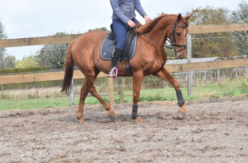 Oh, ‘Herewego’ is the official given name of this incredibly sweet gelding. Because he is so gentle that you could almost eat him, and since he could benefit from a few more cookies to become a bit more filled out, we call him Cookie. Cookie has been a sweetheart of a horse from the very beginning. He is well-behaved in handling, in the trailer, on the road, in the stable, and in the pasture. He can be ridden here by beginner riders and has enough scope to also challenge more advanced riders. He stands approximately 16.1 hh. No stable vices. Cookie has a full pedigree of Medaaly x Masamba. He was born on April 18, 2009. He comes with a very recent health and suitability inspection report, including blood tests, which he has passed. Price: €4,450, including a brand saddle and saddle pad.