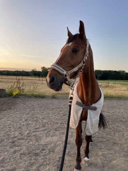 Hoi! Ik ben opzoek naar een leaser voor mijn paard, Aldo! Hij is een 19 jarige ruin van ongeveer 1.62 cm en hij staat in Elshout! Hij is super lief, maar helaas is hij in zijn verleden niet goed behandeld, waardoor hij mensen vertrouwen erg moeilijk vindt. In het begin kan hij je dus best wel uittesten, daarom is hij niet geschikt voor een beginnende ruiter. Hij is voornamelijk moeilijk op de grond, onder het zadel doet hij geen stap verkeerd! En als hij je eenmaal vertrouwt, doet hij alles voor je! Ik ben opzoek naar iemand met al wat ervaring met paarden, die gedreven en netjes is en niet vies is van wat uitdaging! Je mag van alles met Aldo doen, op het moment ben ik lekker dressuurmatig met hem aan het trainen en aan het oefenen met buitenritten, maar we hebben op stal een buitenbak, een longeercirkel en spring materiaal waar je gebruik van kan maken! Ik vraag een bijdrage van 100 euro per maand en dan mag je 3 a 4 keer per week komen. Je hoeft geen klusjes te doen, je komt puur alleen voor Aldo! Lijkt dit je wat? Neem dan zeker contact op!🫶🏻