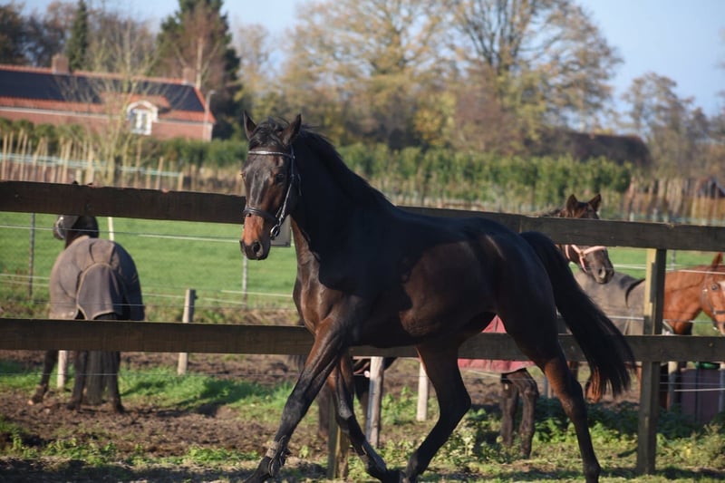 Bloedmooie, SUPERbrave, correcte rijpaardruin Deze geboren Fransman heet Daytona Diamond. Zijn vorig baasje gunde hem ons . Het is werkelijk een plaatje en dat van binnen en van buiten! Het is een geboren galopeur. Hij heeft nooit gekoerst en is nooit op een renbaan geweest. Hij heeft 3 zeer ruime, gedragen gangen. Is voor meerdere takken van de sport geschikt. Ons inziens ook braaf genoeg voor de recreatie! We konden bij binnenkomst meteen op hem wegrijden. hij is 4 jaar oud en ca 165 m hoog en heeft een volle stamboom van : Cloth of Stars x Montjeu x Eagle Eyed. Diamond is wat je noemt een bloedmooi paradepaardje die wacht op een lieve baas waar hij een geweldige toekomst mee gaat hebben! Zijn vorig baasje wil graag contact houden met een nieuwe eigenaar en ze schrijft : “Diamond is Leergierig, lief, een knuffelpaard, mens+ paardgericht, sociaal en braaf en hij houdt van poetsen en aandacht. De reden van verkoop is dat 4 paarden toch te veel zijn. Hij verdiend meer aandacht en rijden.” Hij is met buitenrijden hier superbraaf . Hij gaat bij ons in zijn eentje het erf af en hup de straat op , heel nuchter . Is onlangs door de tandarts behandeld, in bezit van een recent rapport. Prijs € 6450,- incl. merkzadel en compleet hoofdstel