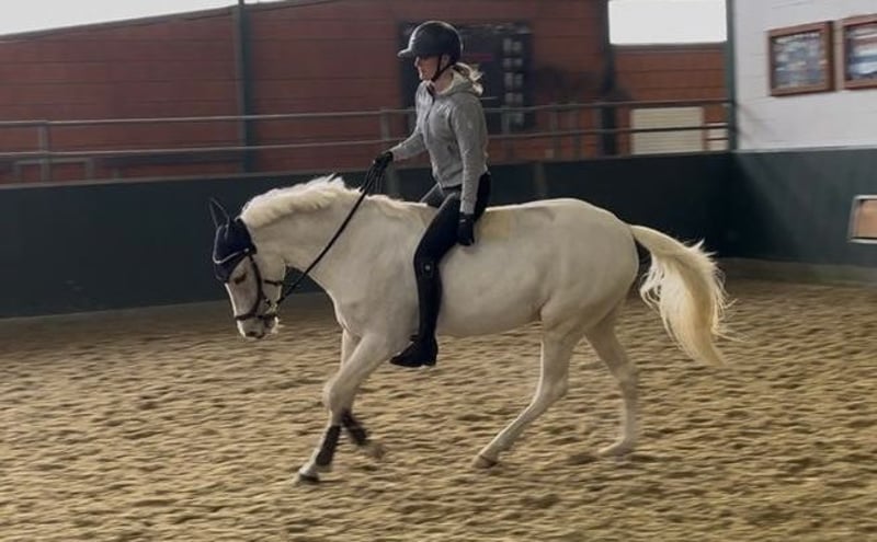 Zum Verkauf steht dieser hübsche Ponywallach ! Er sticht nicht nur raus durch seiner Farbe,sondern auch mit seiner absoluten leichtrittigkeit. Ein Pony was jeden Tag Spaß macht. Creamy ist 5 Jahre alt, ca 147cm und sucht nun seine Aufgabe als Kinderpony. Er ist sehr geeignet für den Einstieg ins Springen oder einfach als Freizeitpartner. Er lässt sich super einfach und fein reiten,hat gesundes Temperament und reagiert toll auf die Hilfen,wodurch vorallem Kinder das feine und gute Reiten lernen können. Er kann Anfänge der Seitengängen und springt auch schon fliegende Wechsel. Er kennt sich schon Kinder mit Ausbindern. Beim Springen zeigt er sich sehr motiviert. Er springt bereits einen kleinen Parcours und bleibt dort total cool. Ideal für Kinder, da er immer im selben Tempo bleibt und es somit einfach macht. Egal ob Wassergraben oder Unterbauten. Beim Freispringen haben wir ihn auch einmal etwas höher springen lassen,wo er sich sehr mutig zeigt. Creamy ist also ein sehr kopfklares Pony mit vielseitigen Veranlagungen. Auch ohne Sattel oder im Gelände ist er total brav. Er ist durch geimpft,entwurmt und hat die Zähne frisch gemacht bekommen. Er hat sehr gute Hufe,wodurch er Barhuf laufen kann. Außerdem war er vor kurzem noch bei der Osteo. Er kennt Offenstall und Boxenhaltung. Ist verträglich mit anderen Ponys und spielt gerne. Keine Allergien oder Krankheiten bekannt. Videos können geschickt werden ! Meldet euch gerne über WhatsApp: 015152252007. Preis VB.