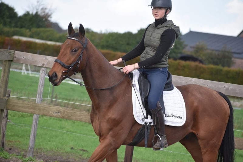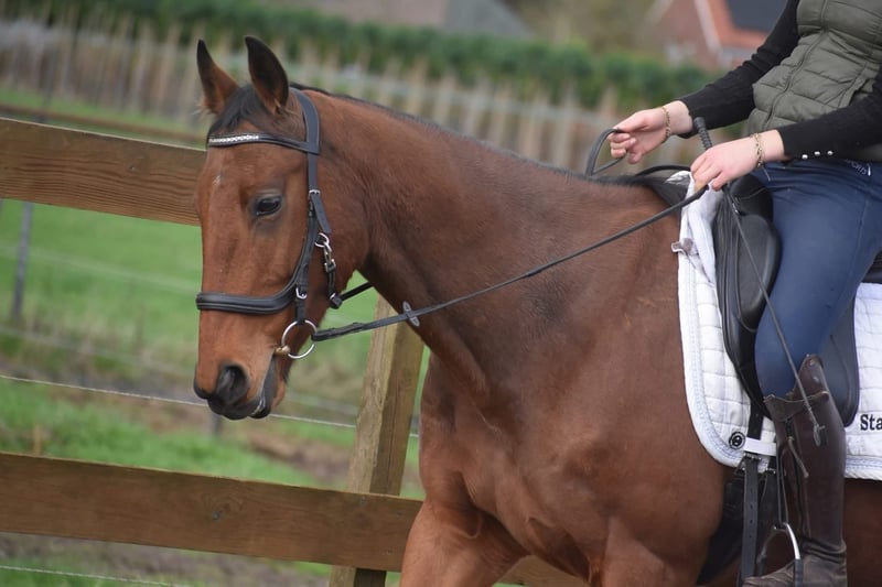 Knappe, vrolijke, 5 jarige ruin Hier is Yamas, een 5 -jarige ruin met de afstamming Anjaal x Creese. Met zijn sprekende bruine ogen en charmante uitstraling weet hij direct harten te veroveren. Hij heeft een mooi familiemaatje met zijn ca 158 m hoogte. Yamas is een paard met een fijn, nuchter karakter. Hij blijft hier rustig in nieuwe situaties en is niet snel onder de indruk van zijn omgeving. Daarbij is hij niet overdreven voorwaarts, wat zorgt voor een veilig en betrouwbaar gevoel in het zadel. Hij is in bezit van een keuringsrapport inclusief bloedafname, waarbij hij is goedgekeurd voor de sport met perfecte buigproeven! In de omgang, het verkeer, de trailer en in de kudde is Yamas hier nuchter en in de wei en op stal erg makkelijk. € 3950,- Incl. zadel en compleet hoofdstel