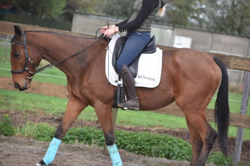 Knappe, vrolijke, 6 jarige ruin Hier is Yamas, een 6 -jarige ruin met de afstamming Anjaal x Creese. Met zijn sprekende bruine ogen en charmante uitstraling weet hij direct harten te veroveren. Hij heeft een mooi familiemaatje met zijn ca 158 m hoogte. Yamas is een paard met een fijn, nuchter karakter. Hij blijft hier rustig in nieuwe situaties en is niet snel onder de indruk van zijn omgeving. Daarbij is hij niet overdreven voorwaarts, wat zorgt voor een veilig en betrouwbaar gevoel in het zadel. Hij is in bezit van een keuringsrapport inclusief bloedafname, waarbij hij is goedgekeurd voor de sport met perfecte buigproeven! In de omgang, het verkeer, de trailer en in de kudde is Yamas hier nuchter en in de wei en op stal erg makkelijk. € 5450,- Incl. zadel en compleet hoofdstel
