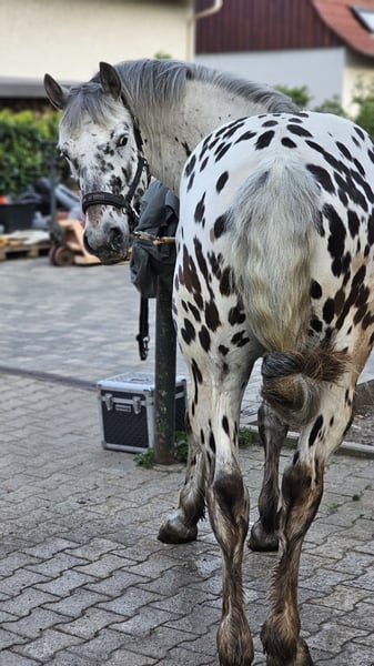 Voici un cheval baroque curieux, qui conquiert les cœurs à chaque passage. Mikus est en pleine formation depuis environ six mois, monte déjà solidement sur un niveau L, est très finement monté et répond bien aux aides. En extérieur, il se montre doux, appliqué et généralement sans peur, tandis qu’en manège, il est très volontaire à apprendre et coopératif. Grâce à sa morphologie baroque, il couvre parfaitement et est généralement plutôt détendu. Même avec des débutants à la longe, il se montre gentil et patient. Chez nous, il passe la journée avec un grand troupeau en trail et la nuit en box. Il est actuellement pieds nus. Les chiens et les chats ne posent pas de problème, tout comme les tracteurs avec un cavalier confiant. Il est bien sûr ferré et à l’aise en van. Contre supplément, il peut être vendu avec tout l’équipement (mors, selle, couvertures, etc.). Dans son passeport, il est indiqué comme Selle polonais chaud, mais les experts suspectent un Knabstrupper. Il a été régulièrement vermifugé, vacciné, présenté à la chiropraticienne et est naturellement en parfaite santé. Afin d’éviter tout tourisme équestre, nous appliquons une commission de pré-approbation de 50 €, qui sera déduite du prix d’achat. Nous vous prions également de comprendre que seules les demandes sérieuses seront traitées.