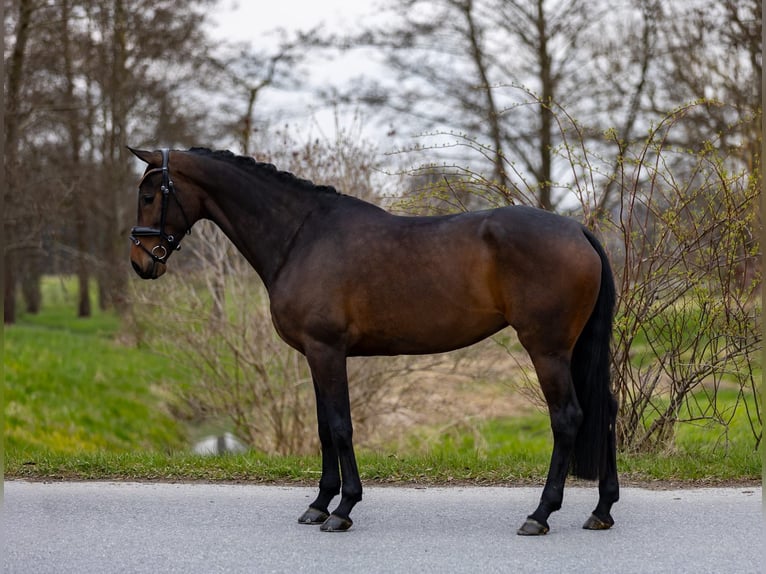 This expressive, dark brown 5-year-old mare captivates at first glance with her harmonious appearance, elegant build, and appealing overall quality. She offers exactly the combination many riders desire: a successful blend of rideability, character, and potential. From a breeding perspective, this mare leaves nothing to be desired: she comes from a top-tier, proven lineage, with both sire and dam producing performance-oriented and high-quality dressage horses. This genetic excellence is clearly reflected in her modern type, her movement quality, and her positive work attitude. Already now, she shows an exceptional balance for her age and is a pleasure to ride. She consistently provides her rider with a confident, straightforward feeling, is seat-friendly, and can be ridden consistently and sensitively. She remains well-behaved, clear-minded, and absolutely reliable – a horse you can depend on every day. Her movements are rhythmical, elastic, and characterized by natural quality – an ideal foundation for further dressage development. At the same time, she impresses with her excellent temperament: friendly, affectionate, and always attentive to humans. Thanks to her comfortable size, she is especially suitable for smaller riders or young riders, yet she also offers enough quality for advanced sporting training. She appeals to both ambitious leisure riders and riders with higher aspirations. In daily handling, she is completely uncomplicated, loving, and balanced – a horse that quickly becomes a reliable partner and brings joy every day. A modern, very attractive horse with great presence, excellent pedigree, and a character that could hardly be better. We warmly invite you to get to know her and to try her out – we look forward to hearing from you! Additional horses for sale are also available with us – perhaps your perfect partner is among them. 📍 Location: Rosenheim 📞 Contact gladly by phone or WhatsApp 📧 Also available via email 📸 Due to current weather conditions, further photos will be added in the coming days.