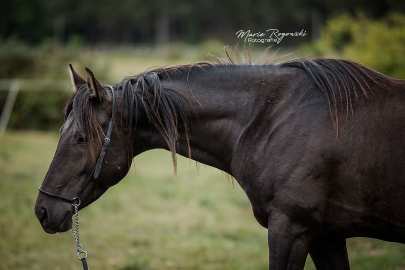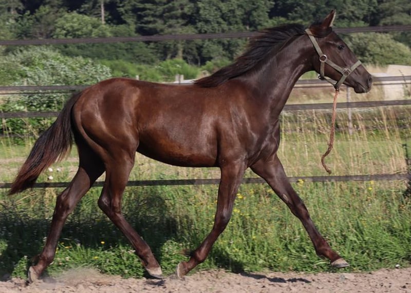 anglo-arabski, księga papierów AES (+ rejestracja IFCE), dymno-czarny (heterozygotyczny gen kremowy) ur. 26 czerwca 2020 r. obecnie (4 lata) ok. 153 cm, 154-156 cm wzrostu końcowego. świetny prospekt konia sportowego, wszechstronność ... stabilny, zwarty wygląd. Dobrze się porusza, dorastał w stadzie na zewnątrz w grupie źrebiąt, dobrze z halterem, liną prowadzącą, pielęgnacją bosych kopyt, załadunkiem, podróżowaniem. Podstawowy trening z ziemi. Nie jest uparty - mieszka w stadninie 24/7 na zewnątrz w większej grupie ogierów ze starym ogierem. Bez kopyt, odrobaczony, zaszczepiony. Piękny wygląd, nadaje się również dla mniejszych jeźdźców. Galeria zdjęć: 2024 - 2022 - 2021 - 2020. Bardzo interesujący pod względem hodowlanym: poprawne linie, ojciec jeden z nielicznych na świecie koni pełnej krwi w kolorze dymnego kremu (podwójnie rozjaśniona czerń), matka z szampańskiej linii hodowlanej Falkenhorst Stud (Gwendolyn Gregorio). Ojca i wnuka można również obejrzeć w stadninie. Bardzo korzystne ze względu na redukcję naszych zapasów. Z powodu śmierci hodowcy absolutna "limitowana edycja GG" Oferta. Sprzedaż prywatna bez gwarancji, gwarancji lub zwrotu. Odbiór osobisty absolutnie preferowany, zakwaterowanie dostępne bezpłatnie.