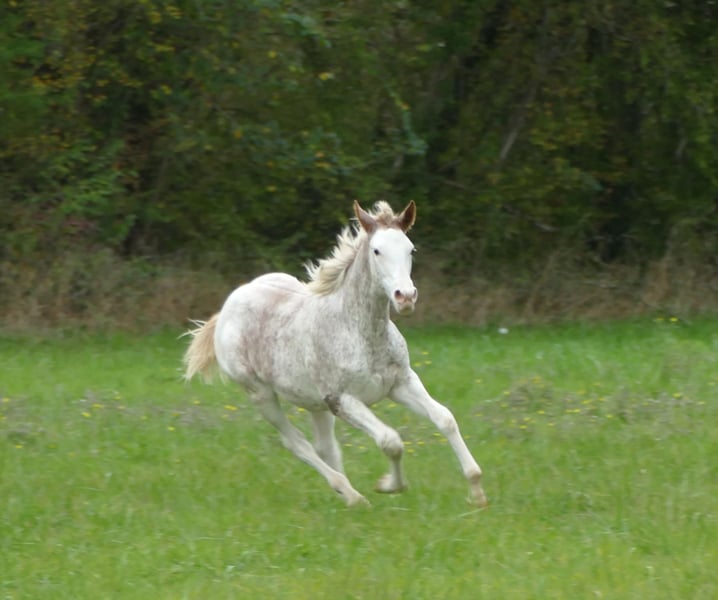 Seltene Anglo-Arab-Pouliche, Pie DW 37 „Magic White“, basierend auf einer Alezane, von Viconte des Neiges und Ratina de Brunet, Tochter von ZANDOR Z. Die mütterliche Linie ist gut vertreten im Bereich Vielseitigkeits- und Springwettbewerbe; die Mutter ist die eigene Schwester eines erfolgreichen Vielseitigkeitsreiters mit einem ICC-Wert von 136, qualifiziert für das französische Nationalteam. Brüder und Schwestern der Pouliche treten erfolgreich in Vielseitigkeit und Springen an, darunter ihr eigener Bruder Iso 114 im Alter von 4 Jahren, qualifiziert für das Finale des klassischen Zirkels. Pinky zeichnet sich durch ein schönes Modell und elegante Bewegungen aus (bemerkenswert bei Zuchtveranstaltungen) sowie durch ein außergewöhnlich freundliches Temperament, typisch für ihre Herkunft!